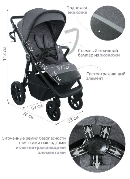 - Регулируемая по высоте ручка для родителей с покрытием из эко кожи.