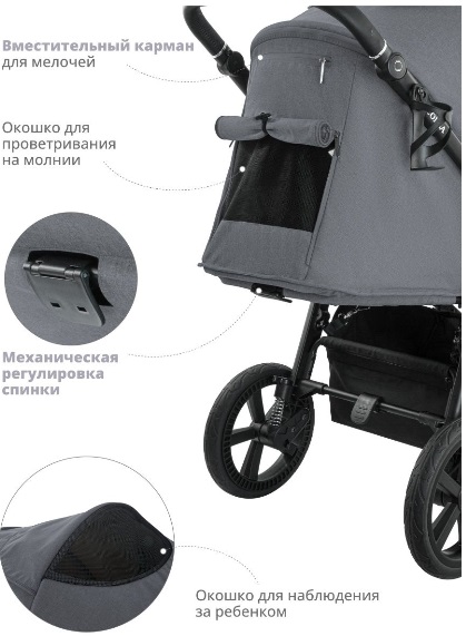- Большая вентиляционная секция для летних прогулок.