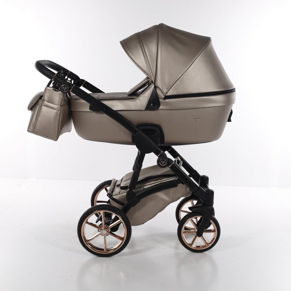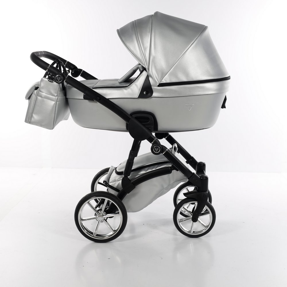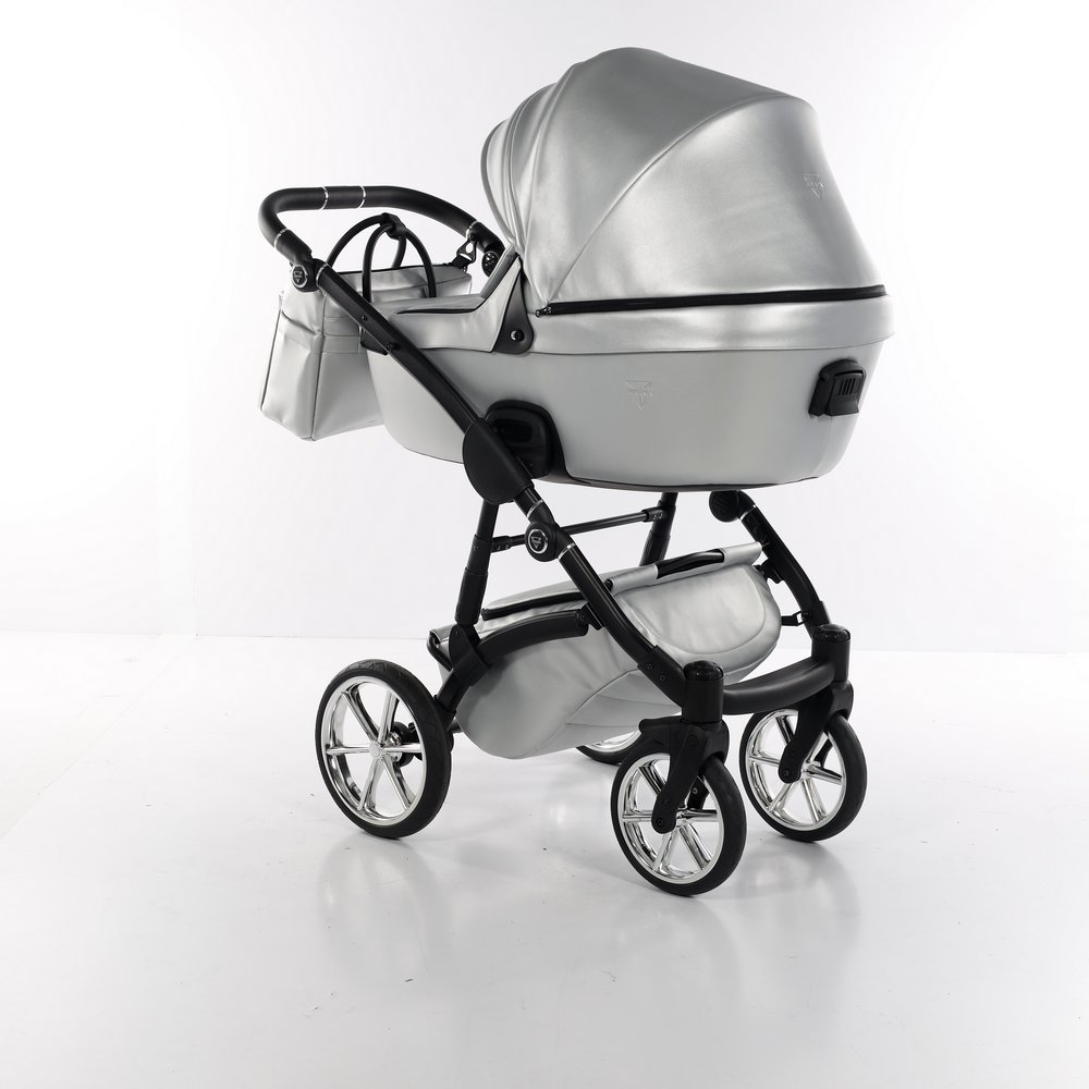 Коляска Junama Termo Line Ecco 2 в 1 (Юнама термо лайн Эко) - современная коляска из новой коллекции популярного польского бренда, в которую компания вложила не только многолетний опыт, а и современный подход, характерные для бренда модные тенденции, усовершенствованную техническую составляющую для того, чтобы конечный продукт получил лучший результат. В основании люльки заложен инновационный материал, который обеспечит тепловой комфорт и уют зимой, а летом защитит от жары. EPP или вспененный полипропилен – экологичный материал, который 100% подлежит вторичной переработке, а также является антибактериальным. Материал представляет собой термопластичную, мягко-эластичную пластиковую пену, которая характеризуется высокой устойчивостью к физическим факторам – перепаду температур, ударам, образованию грибков. Что касается езды, в том числе на неровных дорогах с препятствиями, производитель продумал современные решения и обеспечил высокий уровень комфорта вождения, который обеспечивают шины новой версии и регулируемая амортизация. Цветовая палитра представлена пастельными оттенками, металлик с едва мерцающим эффектом. Особого внимания заслуживает форма люльки – оригинальный фасон, выполненная в приятной на ощупь ткани, материал водонепроницаемый и с защитой от УФ 60, что гармонично сочетается с хромированными деталями, металлическими ободками на черной раме. Популярность производителя Junama проверена временем и его продукция используется в Европе и за ее пределами, имеет высокий рейтинг и положительные отзывы.