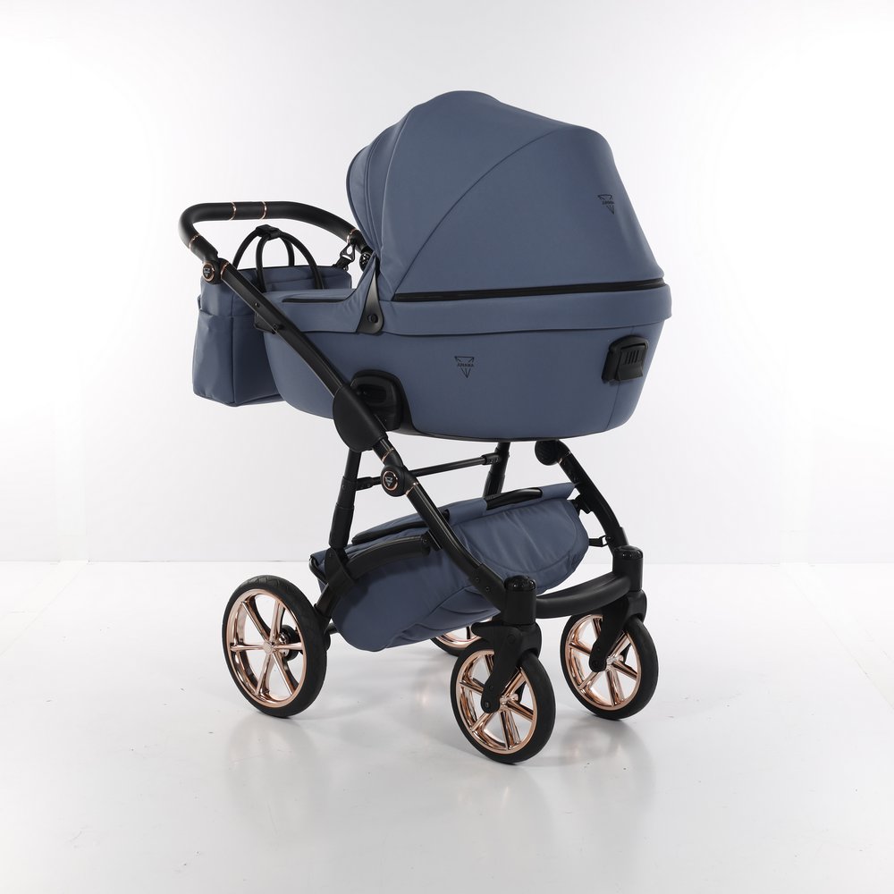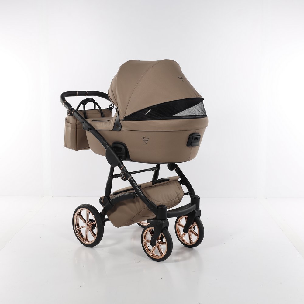 Дизайн коляски выполнен в строгом и лаконичном стиле. Однотонная обивка из высококачественной ткани выполнена в нежный расцветках. Металлизированные элементы шасси подчеркивают стиль и статусность модели.