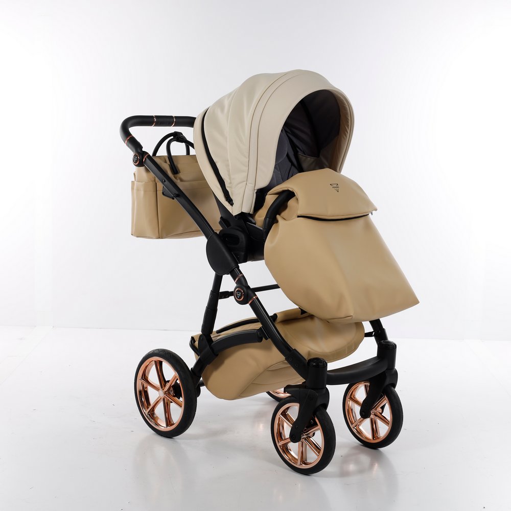 Дизайн коляски Mix выполнен в строгом и лаконичном стиле. Обивка коляски выполнена из высококачественной ткани и премиальной эко кожи. Металлизированные элементы шасси подчеркивают стиль и статусность модели.