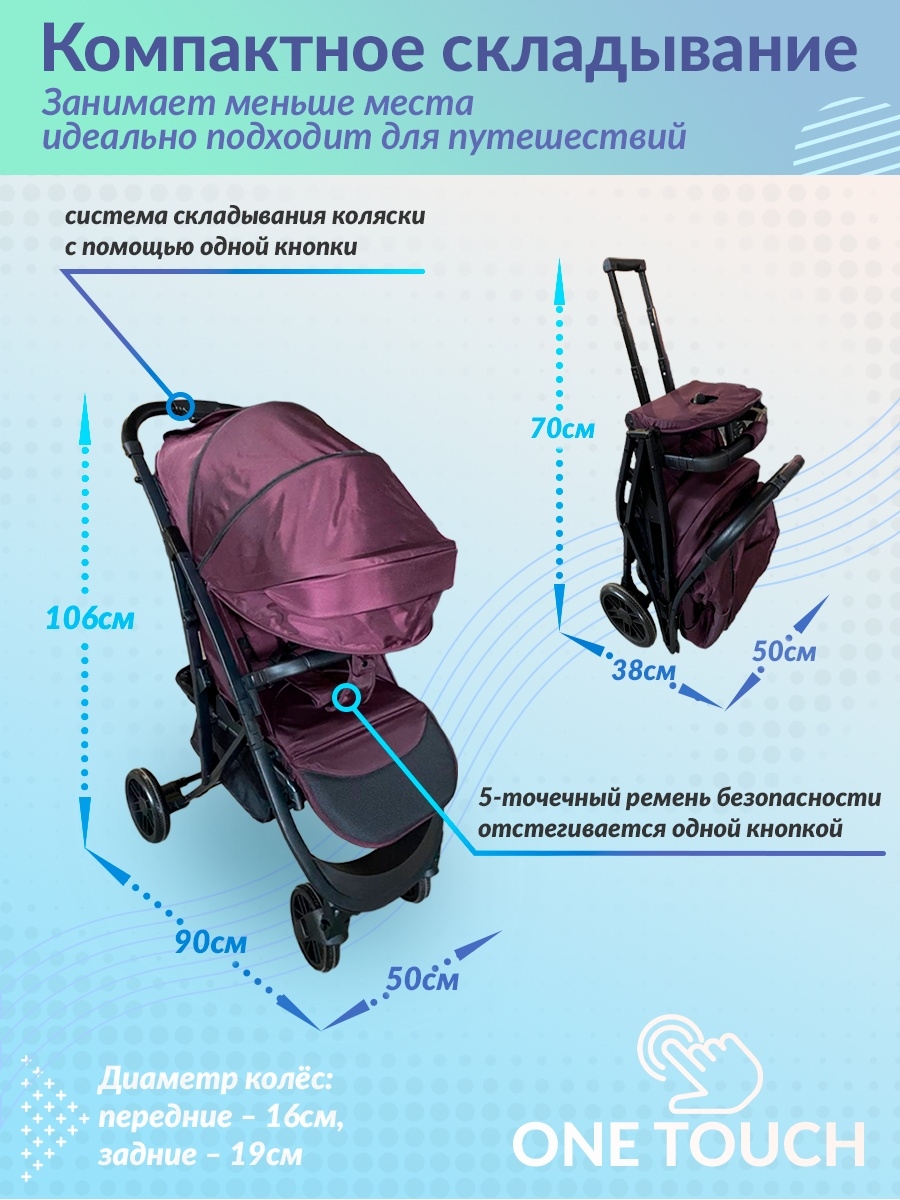Размеры коляски в собранном виде (дхшхв): 90х50х106 см