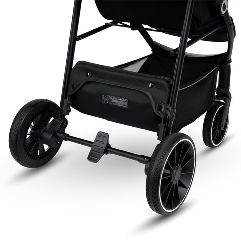 Коляска оснащена не требующими обслуживания полиуретановыми колёсами. Их главная их особенность - манёвренность и плавный ход. Вращение колес на 360º позволяет легко перемещать коляску по неровной поверхности. Двойная система снижения вибрации - амортизаторы, расположенные на задних и передних колесах, обеспечивают плавность езды и комфортное пребывание в коляске маленького пассажира.