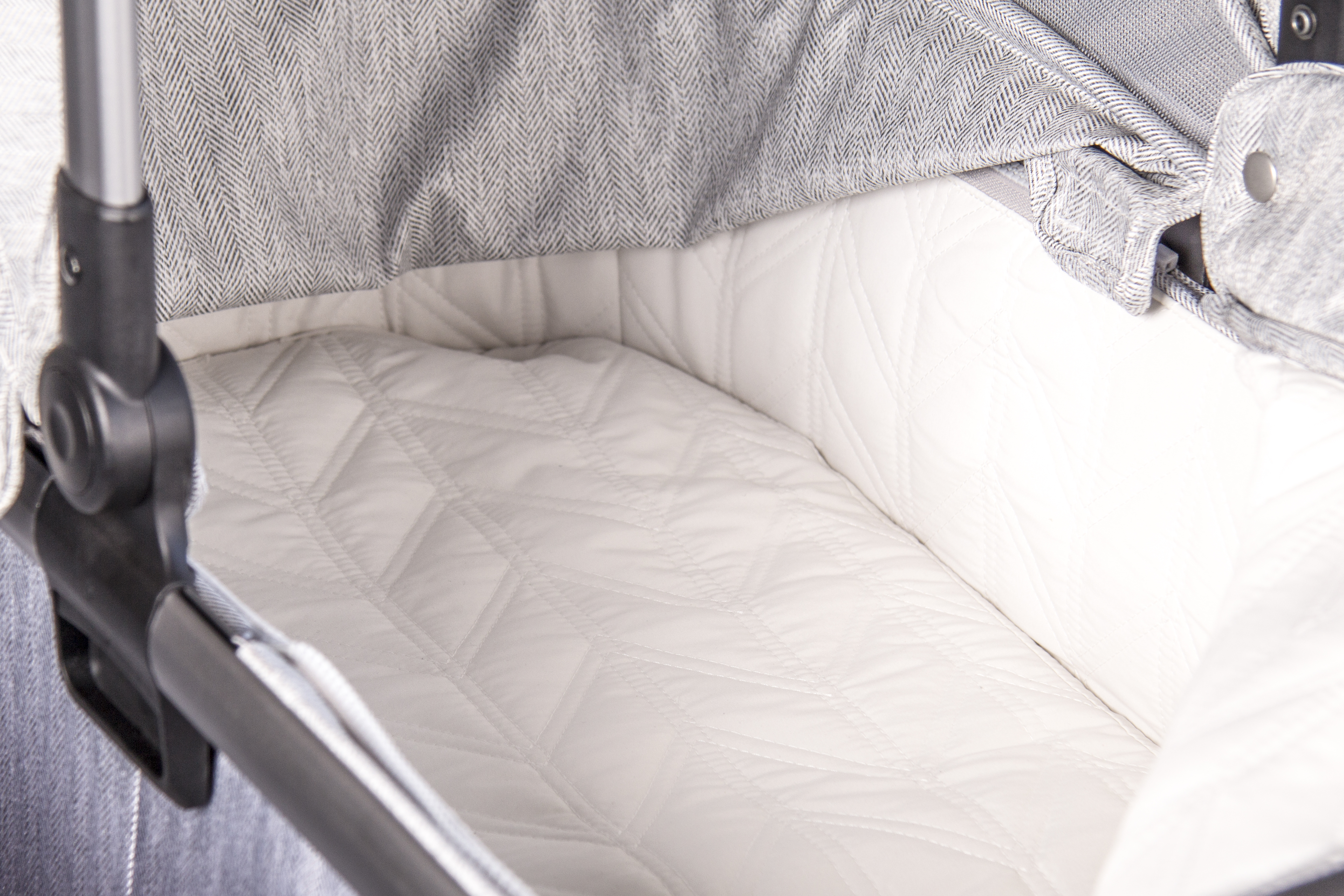 Прогулочный блок устанавливается лицом к маме или от мамы и имеет почти горизонтальный наклон спинки для сна. Подножка регулируется по высоте, увеличивая спальное место для малыша. За безопасность ребенка отвечают надежные 5-ти точечные ремни безопасности и удобный съемный бампер, выполненный из качественной эко кожи.