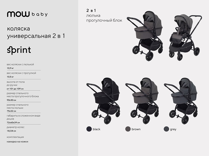 Особенности коляски Mowbaby Sprint 2 в 1 :
