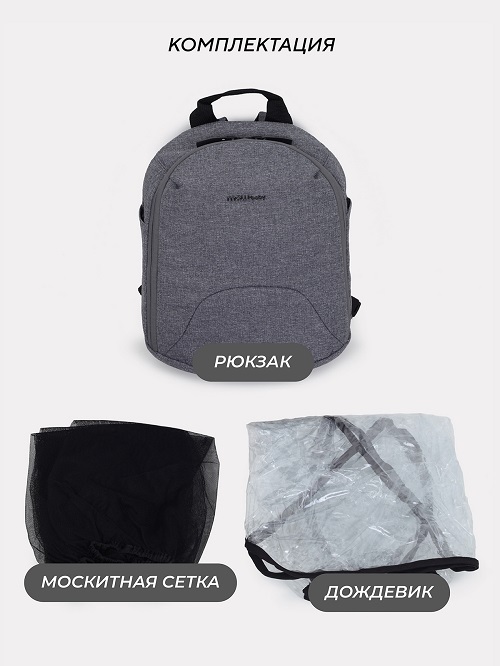 В комплекте: люлька, прогулочный блок, шасси, корзина для покупок, накидка на ножки, сумка для мамы, москитная сетка, дождевик.