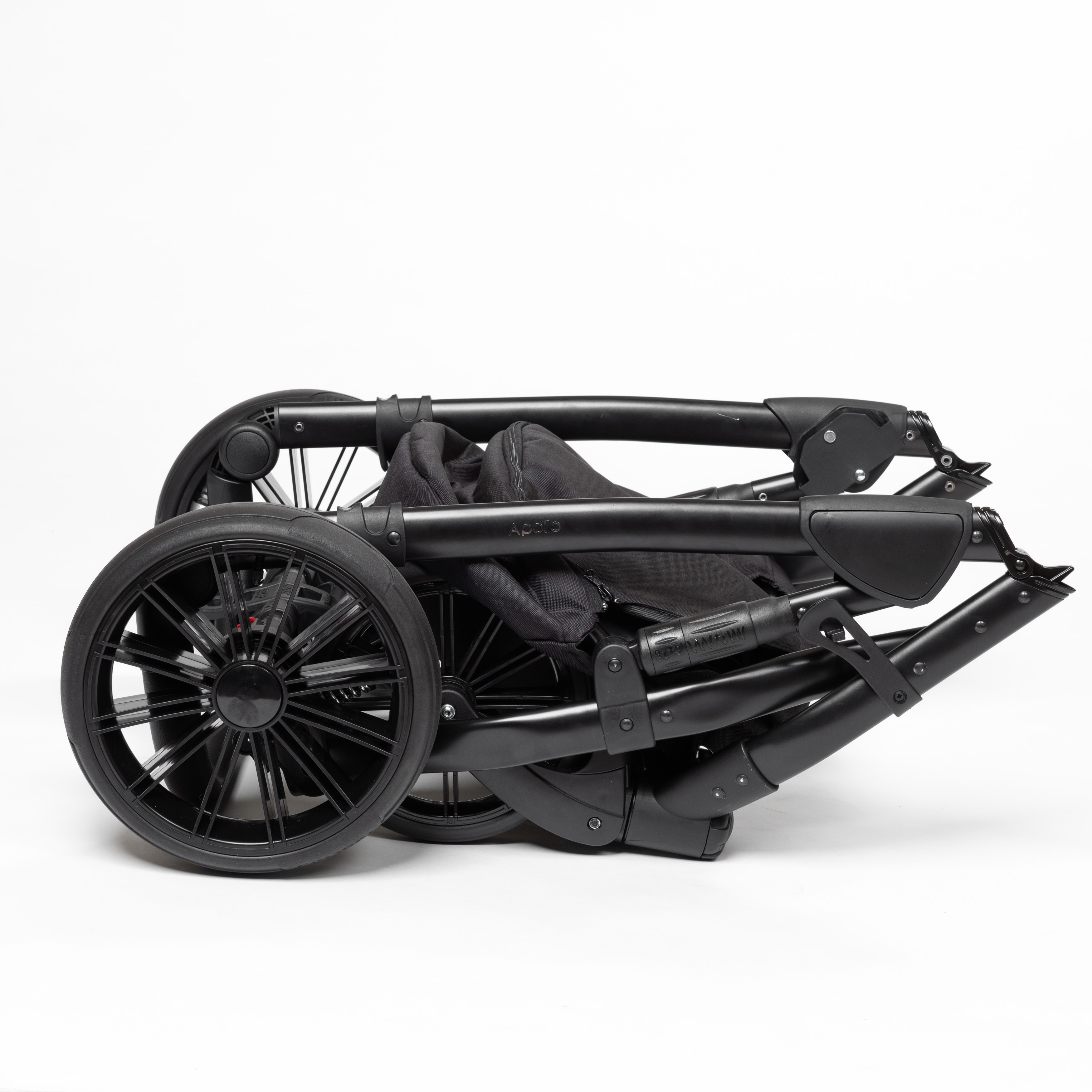 - Габариты коляски в сложенном состоянии с прогулочным блоком и установленными колесами (Д х Ш х В) - 84 см х 61,5 см х 45 см