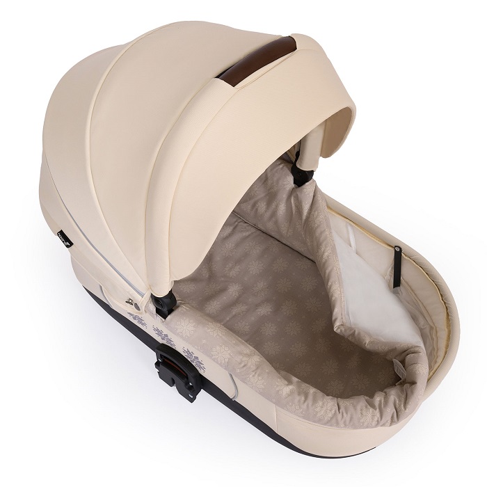 Люлька с ровным основанием и кокосовым матрасиком подходит для малышей от рождения. Высокие бортики, плотная накидка и капюшон надежно защитят кроху в любую погоду. Жарким летом используйте москитную сетку и сетчатую вставку в капюшоне.