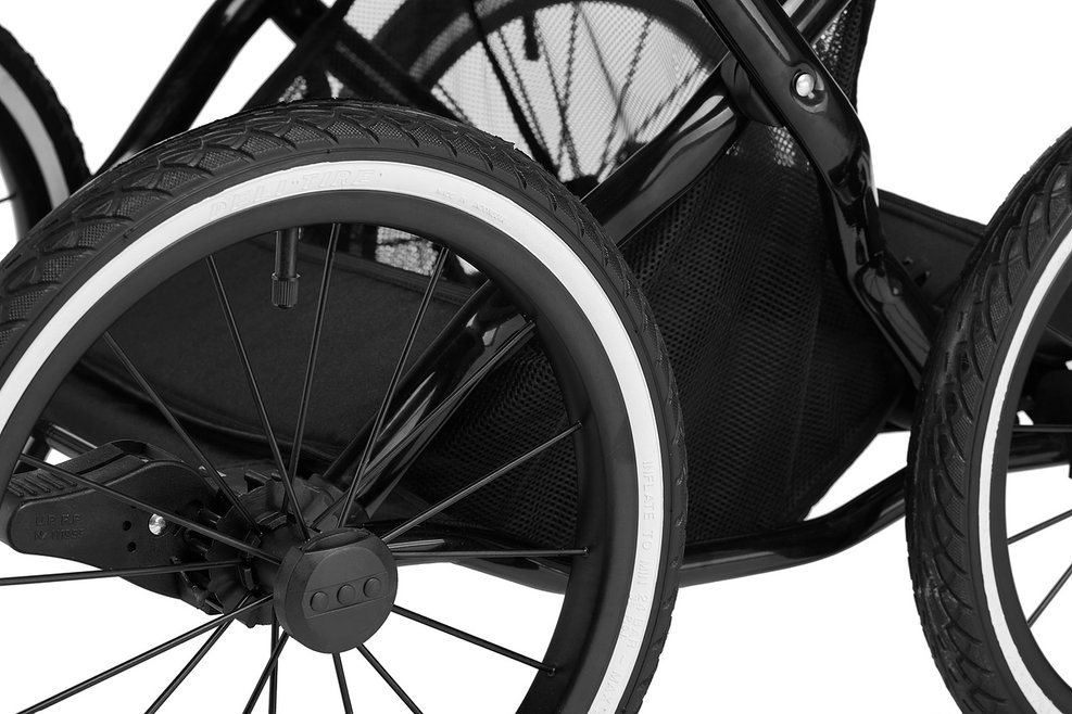 Вездеходные надувные резиновые колеса с системой амортизации «Anti-Shock», что делает ход максимально мягким и плавным, исключая тряску на неровной дороге.