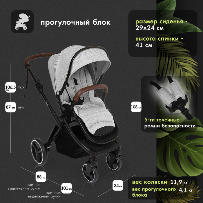 - Регулировка родительской ручки по высоте: да, телескопическая (от 87 до 106,5