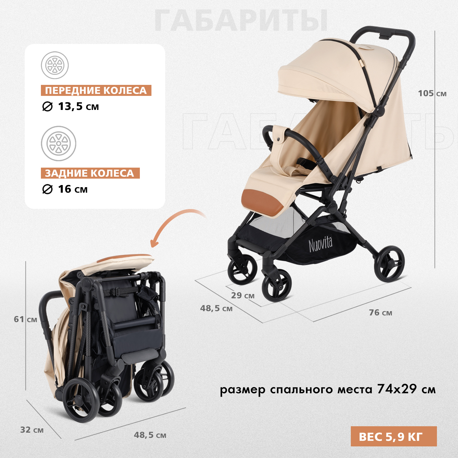- Диаметр колес 13,5 и 16 см