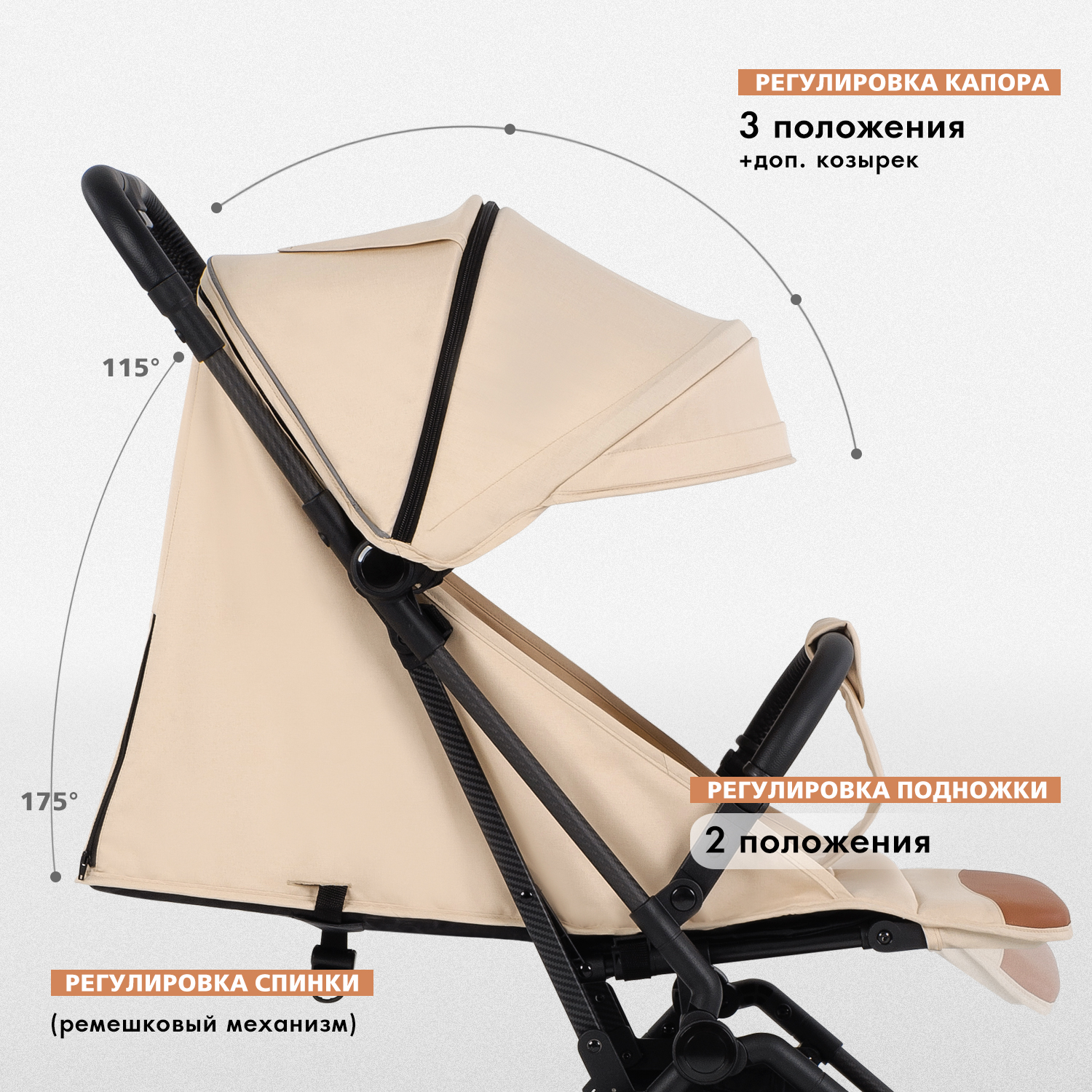 - Карбоновая рама дает коляске максимальную легкость и надежность.