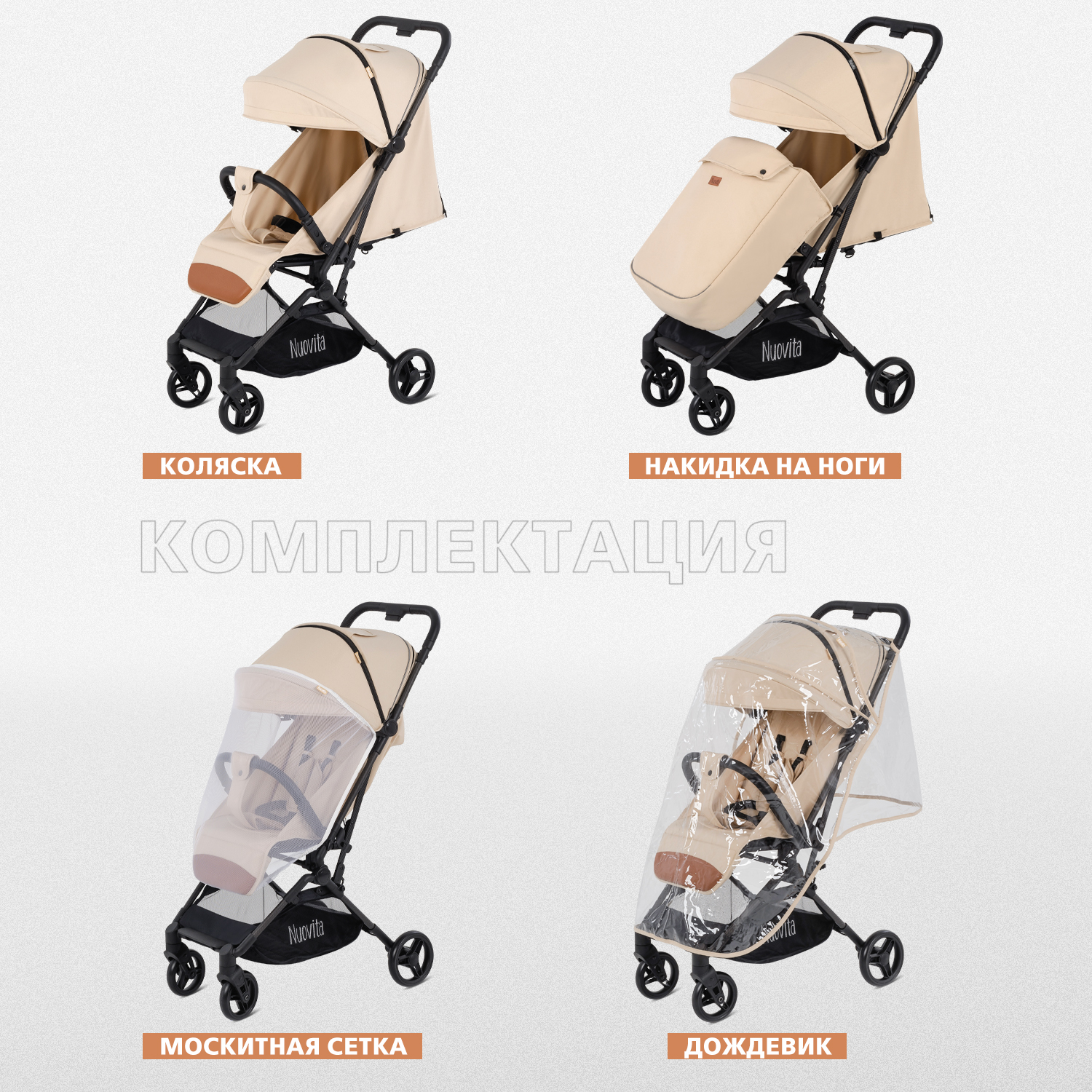 - В комплекте: накидка на ножки, дождевик, москитная сетка.