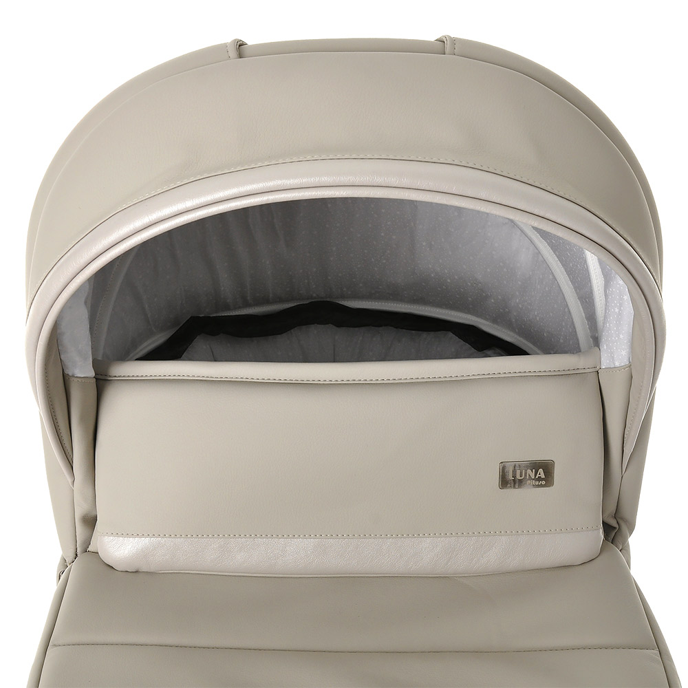 Усовершенствованное сложение коляски Luna теперь позволяет собрать ее вместе с установленным прогулочным блоком. В сложенном виде раму блокирует боковой фиксатор X-Lock, не давая ей возможности самопроизвольно раскрыться. Для удобства родителей предусмотрены, регулируемая ручка из эко-кожи, крепления для подстаканников, модная вместительная сумка для коляски и багажная корзина закрытого типа. Ручка регулируется в нескольких положениях, позволяя каждому родителю найти для себя комфортный уровень. Багажная корзина выдерживает вес до 5 кг, благодаря крышке все перевозимые вещи сохранятся в чистоте и не выпадут из коляски.