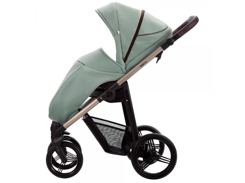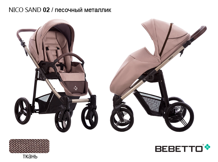 Bebetto Nico SAND (Бебетто нико санд) - прогулочная коляска с реверсивным сидением для ребенка с 6 месяцев до 3-4 лет. Главная особенность коляски Sand в невероятно красивой раме «песочный металлик» и элементов из эко кожи в шоколадном цвете. Коляска смотрится эффектно и очень стильно. Реверсивный прогулочный блок позволит маме возить ребенка не только по ходу, но и против хода движения, что даст маме возможность наблюдать за ребенком во время прогулки и удобно общаться с ним. Коляска оснащена большим просторным сидением с механической спинкой, которая регулируется по высоте с помощью одной руки. В сочетании с поднятой подножкой образуется комфортное спальное место 87х32 см. Очень большой капюшон закроет ребенка от яркого солнца или небольшого дождика, а накидка на ножки укроет от ветра. Современные колеса из вспененной резины не прокалываются и не сдуваются, благодаря чему коляска всегда готова к прогулке, без дополнительного накачивания колес. Прекрасная амортизация, а так же системы SAS и DMS обеспечат вам легкость в прогулках с ребенком не зависимо от качества дорог. Для вещей и игрушек предусмотрена большая корзина, которую легко снять для стирки.