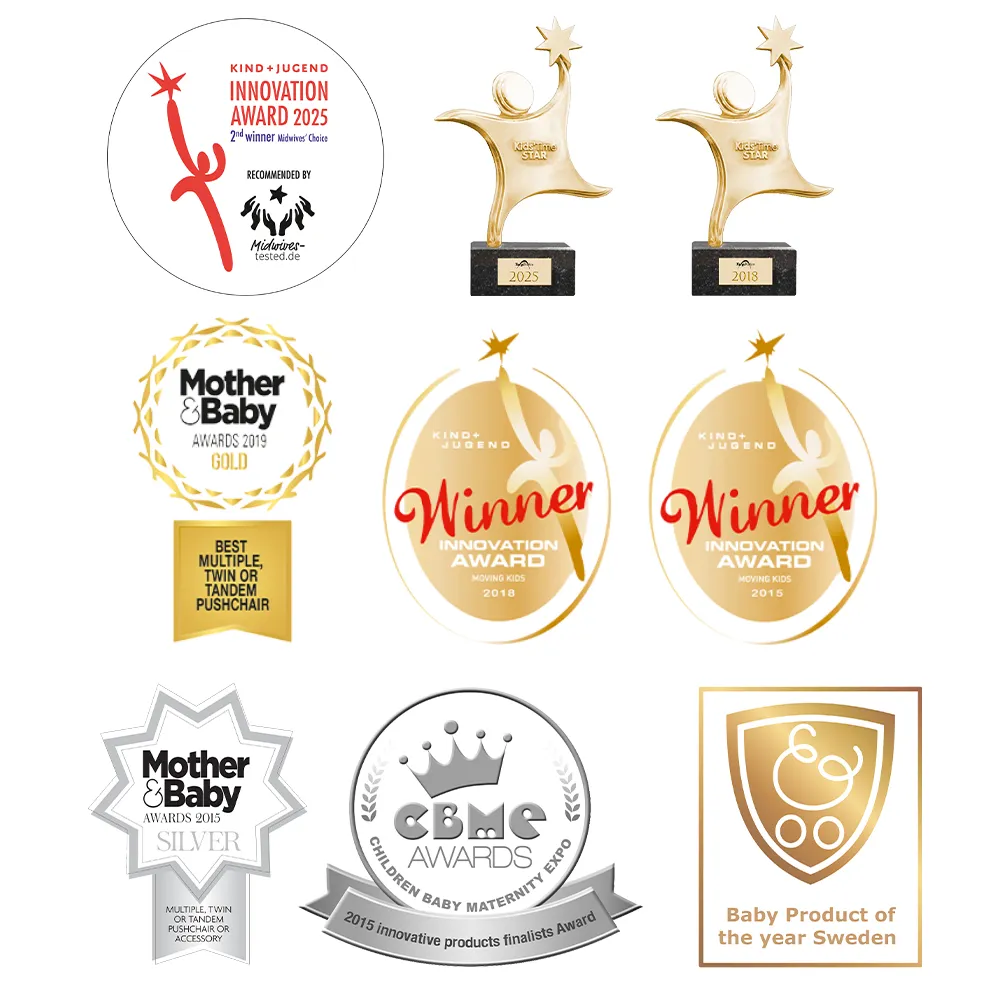 - Лауреат самой престижной в мире премии в области детских товаров K&J Innovation Awards – эквивалента «чемпионата мира» в области инноваций и дизайна