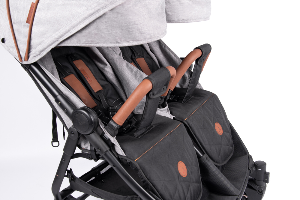 Коляска для двойни Coletto Enzo Twin (колетто энзо твин) - комфортная и легкая коляска для двоих детей от 6 месяцев. Вес модели всего 12 кг , что позволяет маме самой справиться с коляской, а так же легко управлять ей на улице. У каждого ребенка в коляске будет свое удобное и комфортное место с индивидуальными настройками спинки, подножки, капюшона и ремней. Сон одного малыша не сможет помешать интересной прогулке для второго. Качественная обивка из плотной ткани не только делает коляску привлекательной, но и приятной на ощупь, практичной и удобной в эксплуатации. Для большего комфорта ручка для родителей и бампера у детей выполнены из качественной эко кожи. Два больших капюшона отлично закроют детей, а мама сможет приглядывать за малышами через смотровые окошки.