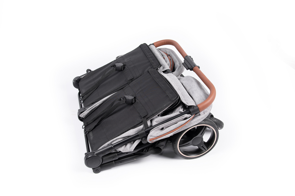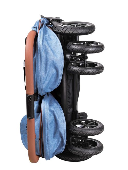 Коляска складывается одной рукой, не требуя дополнительных усилий и времени со стороны родителей. Чтобы коляска случайно не разложилась во время транспортировки, есть удобный фиксатор с одной стороны.