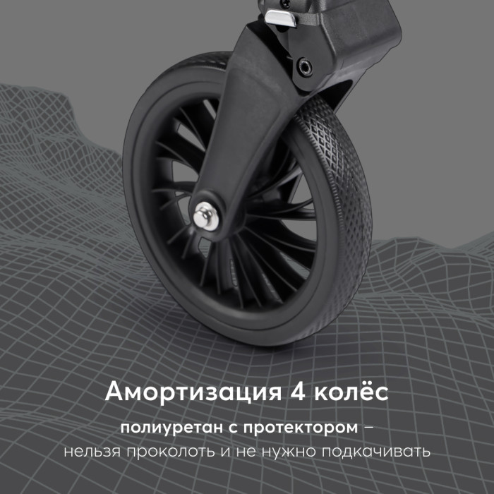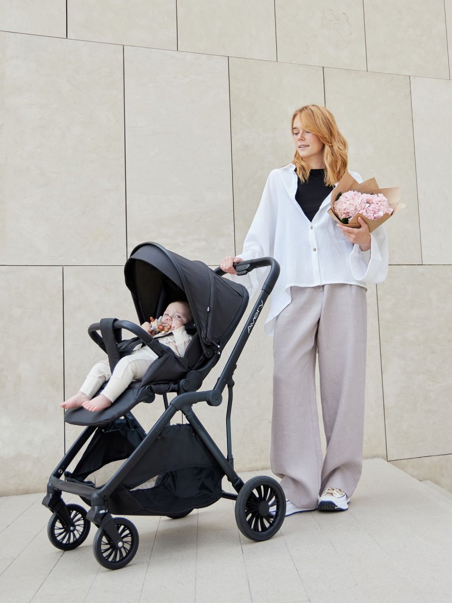 Прочная рама из авиационного алюминиевого сплава гарантирует надежность коляски. Смело гуляйте и путешествуйте, не боясь неприятных сюрпризов. Прогулочная коляска управляется одной рукой, и буквально скользит по дороге. 4 мощных колеса из полиуретана с протекторами на шинах невозможно проколоть и не нужно подкачивать. Благодаря пружинной амортизации на всех колесах AVERY легко преодолевает бездорожье и бордюры. Ножной тормоз блокирует оба задних колеса.