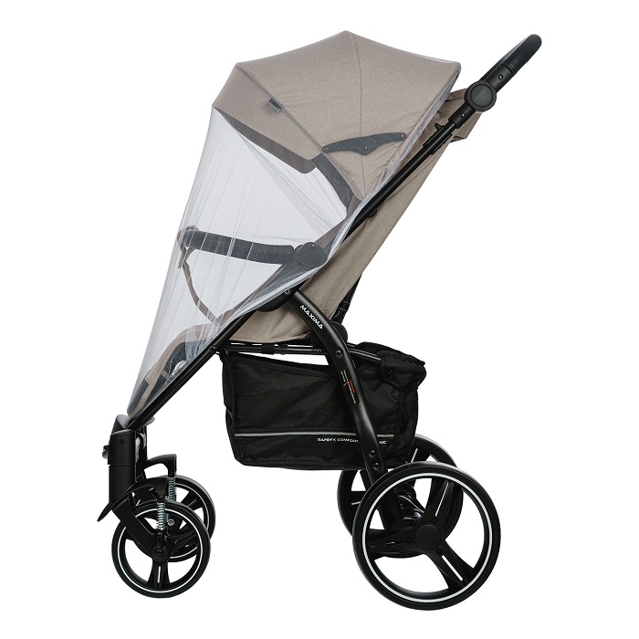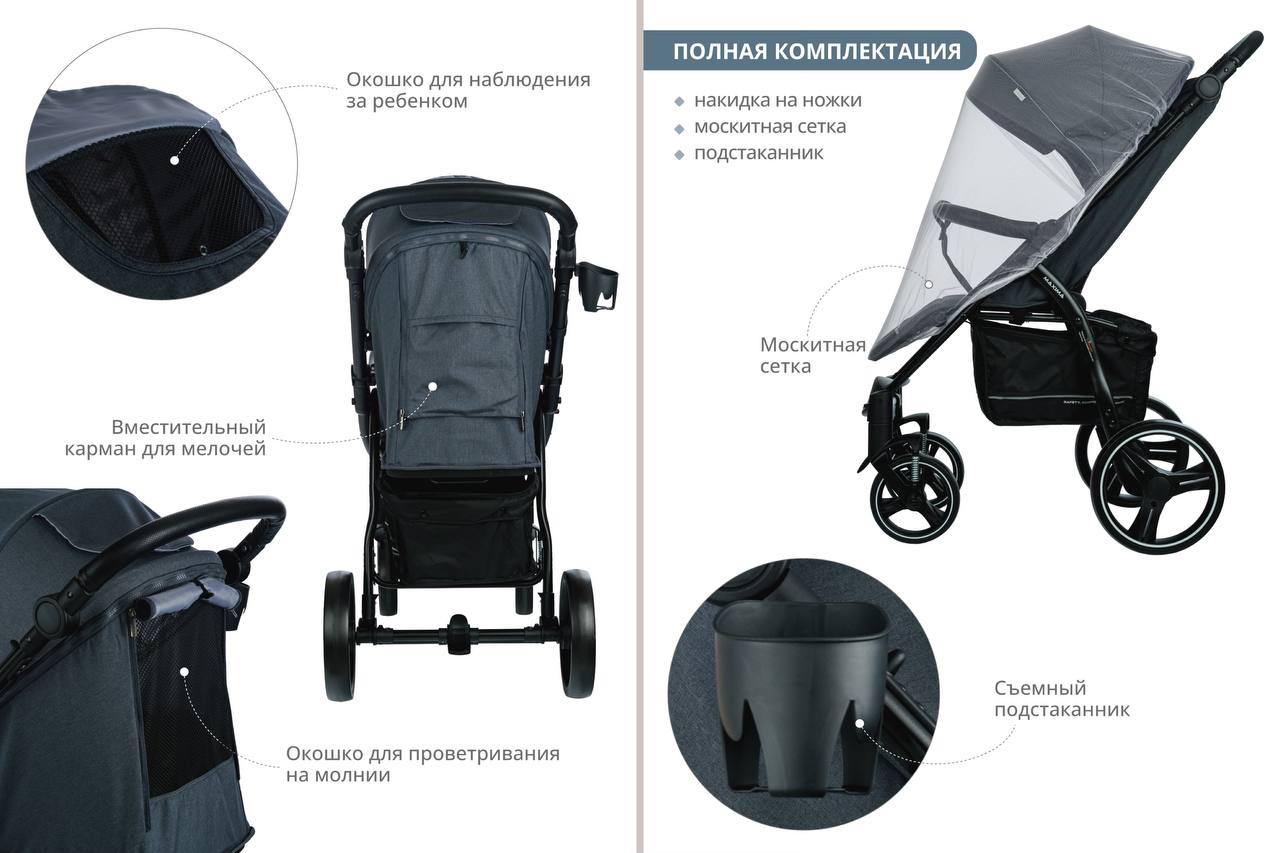В комплекте: москитная сетка, подстаканник, съемная открытая корзина для покупок.
