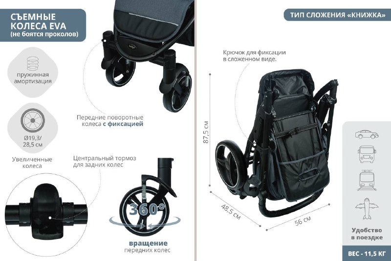 - Коляска в сложенном виде 56 х 48,5 х 87,5