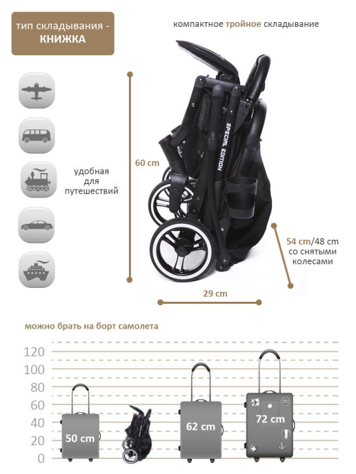 - Размер в разложенном виде: 53×86×98 см