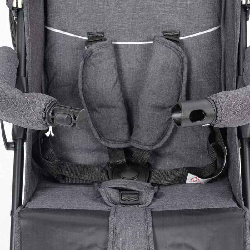 Примерно с годика малыш сможет самостоятельно залазить и слазить с коляски. Для безопасности ребенка предусмотрены ремни безопасности, паховый ремешок от сползания и удобно отстегивающийся посередине бампер.