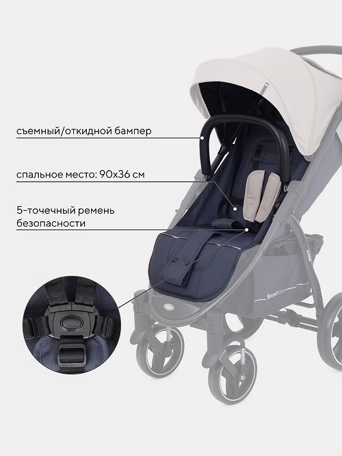 Регулируемая по высоте ручка для родителей из эко кожи. Кроме того, и ручка, и бампер дополнены мягким наполнителем - вам и малышу будет невероятно комфортно.