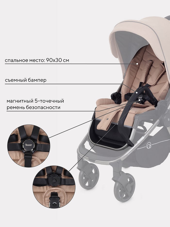 Прогулочная коляска RANT FLEX PRO RA099 (Рант флекс про) - новинка 2024 г. Красивая, современная коляска с реверсивным сидением. Коляска выполнена в трендовых цветах этого года из премиальных тканей со специальной пропиткой и с защитой от солнечных лучей UV50. FLEX PRO RA099 предназначена для ребенка от 6 месяцев до 4-5 лет, с максимальной нагрузкой до 22 кг (на сидение). Но за счет полностью горизонтального наклона спинки и возможности везти ребенка против хода движения, может использоваться для детей меньше 6 месяцев.