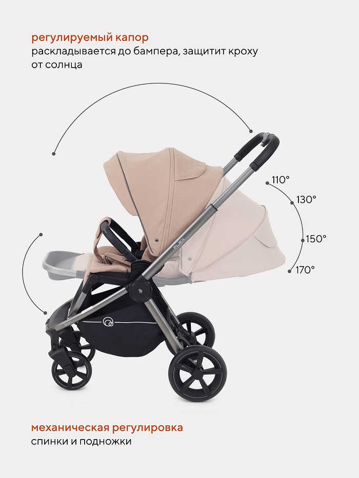 Обивка из ткани со специальной пропиткой и с защитой от солнечных лучей UV50, уберегут кроху от осадков, ветра и интенсивного солнца
