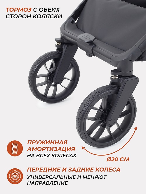 - тормоз с обеих сторон коляски в зависимости от положения ручки