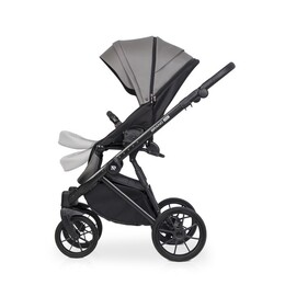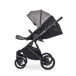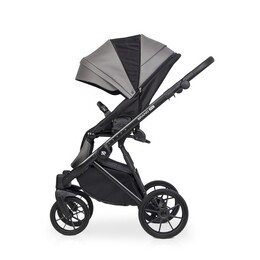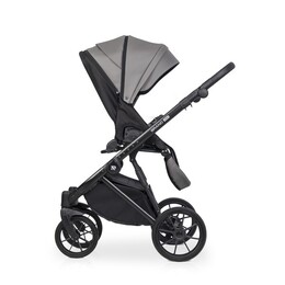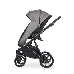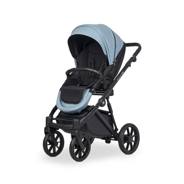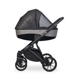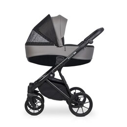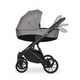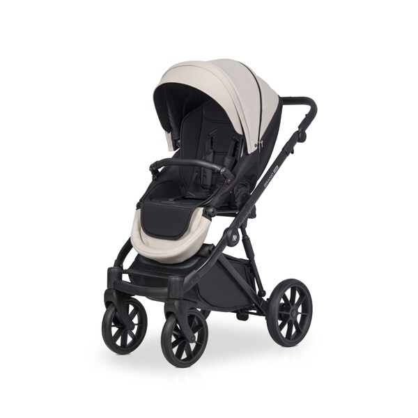 Для новорожденного ребенка предусмотрена просторная люлька с высокими бортиками и ручкой для переноски на капюшоне. Нижняя часть люльки выполнена из глянцевого пластика, а верхняя часть люльки покрыта матовой эко кожей. Внутри люлька выполнена из качественной хлопкобумажной атласной ткани, а для комфорта ребенка предусмотрен матрасик из кокосовой койры. Вся внутренняя обивка и чехол на матрасике снимаются для стирки. Люлька коляски имеет регулировку по высоте спинки, которая очень практична при спуске коляски с горки (благодаря ей вы избежите ситуации, когда голова ребенка находится ниже ножек). Механизм регулировки расположен под люлькой, поэтому вы можете управлять им, не разбудив ребенка. Солнцезащитный козырек имеет регулировку и большую вентиляционную панель. Дополнительная система вентиляции также находится в нижней части люльки.