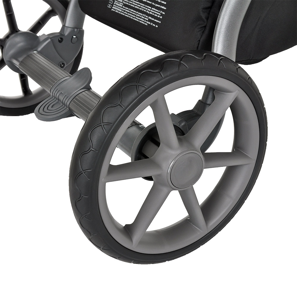 Колёса ненадувные безкамерные, передние 10 дюймов (25,4 см), задние 12 дюймов(30,48 см). В дисках установлены подшипники для обеспечения мягкого хода. Передние колёса поворачиваются на 360 градусов с возможностью фиксации положения "только прямо" с помощью удобного кольца.