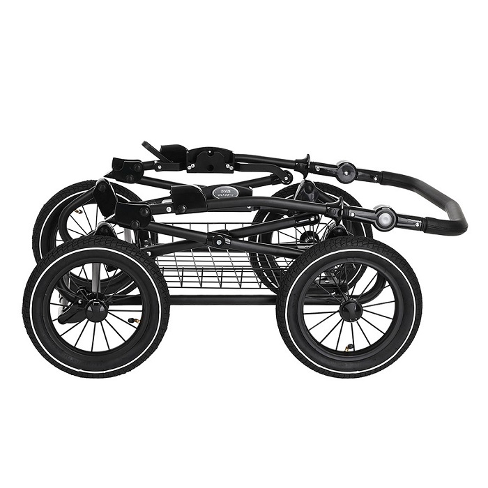 Главное достоинство такой рамы, что при движении по труднопроходимой местности колеса не вибрируют, коляска движется очень легко, а идеальная амортизация, основанная на кулисах, закрепленных в четырех точках, обеспечивает хороший сон для ребенка.