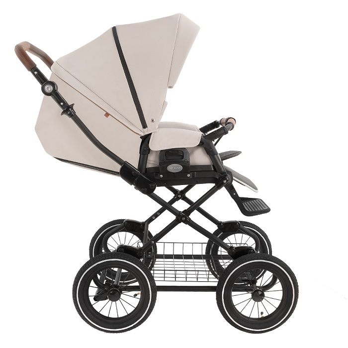 Roan Bass Next Classic Кожа - это детская коляска на классической раме на 12 дюймовых надувных колесах. Коляска прекрасно подойдет для новорожденного ребенка, ведь она большая, просторная, с жестким и ровным дном. Коляска надежно защитит ребенка от любой непогоды и создаст комфортные условия для продолжительного сна на свежем воздухе.