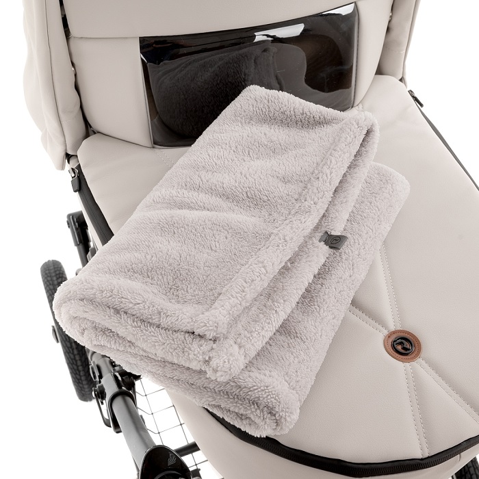 - Тёплая накидка на ножки имеет хороший запас по размеру и удобно крепится к прогулочному блоку на кнопках.