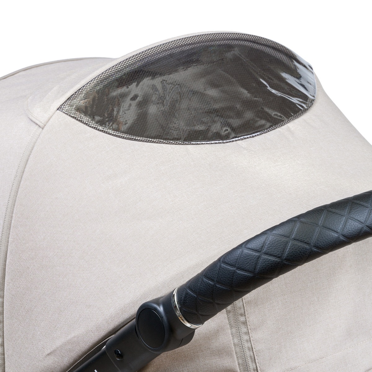 Во время летних прогулок в задней части капюшона можно открыть большое вентиляционное окошко с москитной сеткой. Пока ребенок спит на свежем воздухе в коляске не будет душно и жарко. В зимний период времени окошко надежно закрывается, предотвращая поддувание.