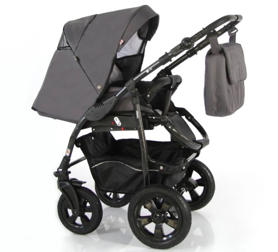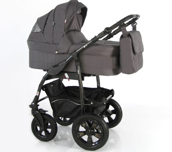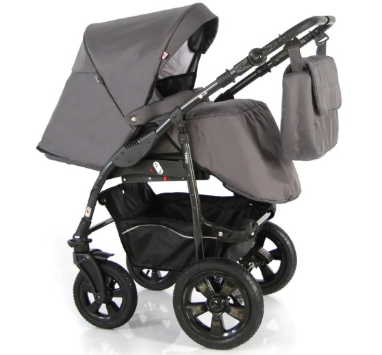 В комплект с коляской идет вместительная сумка для мамы с пеленальным матрасом, корзина для покупок под люлькой, москитная сетка и дождевик.