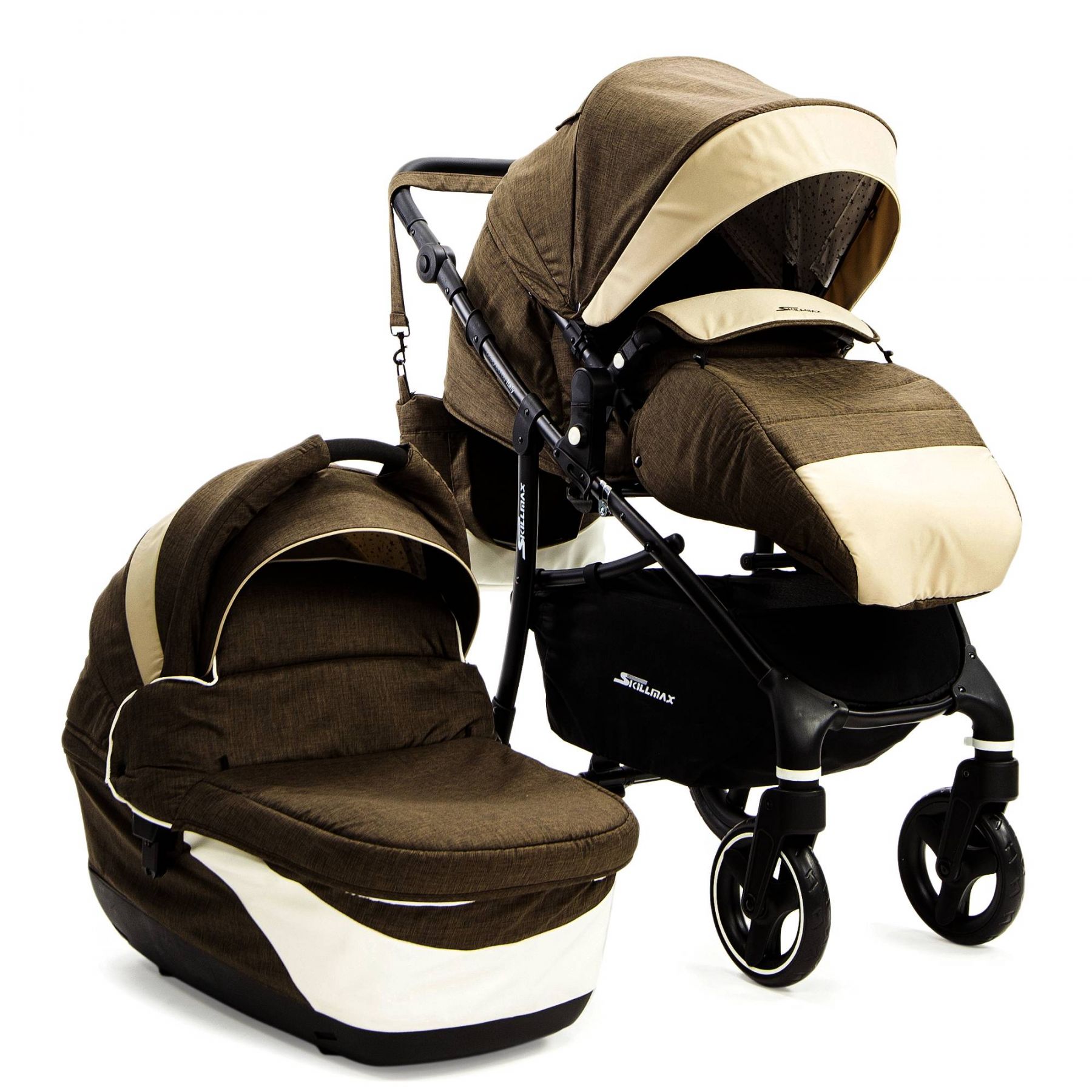Коляска Skillmax K-271 2 в 1 (скиллмакс) - детская коляска для ребенка с 0 до 3 лет. Модель отличается невысокой ценой, большими надувными колесами и удобным функционалом.