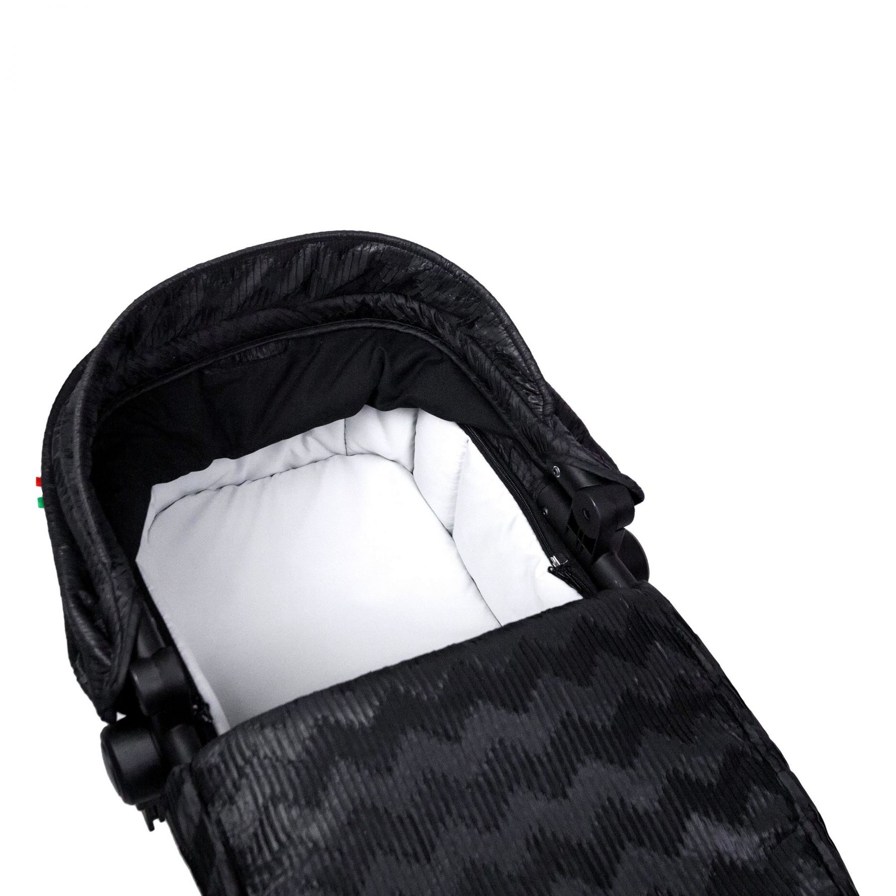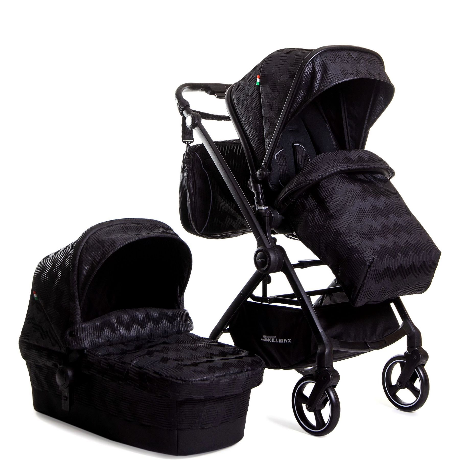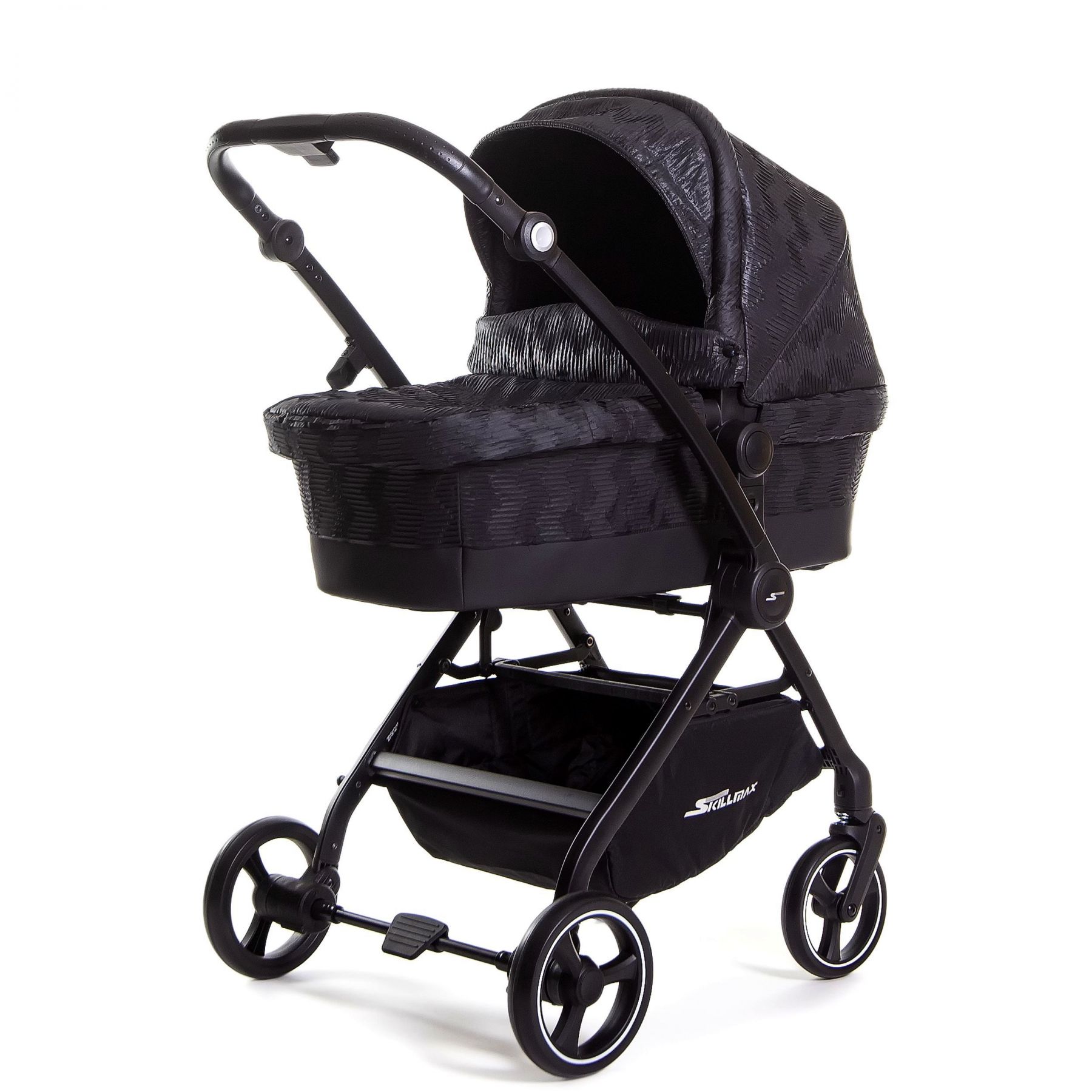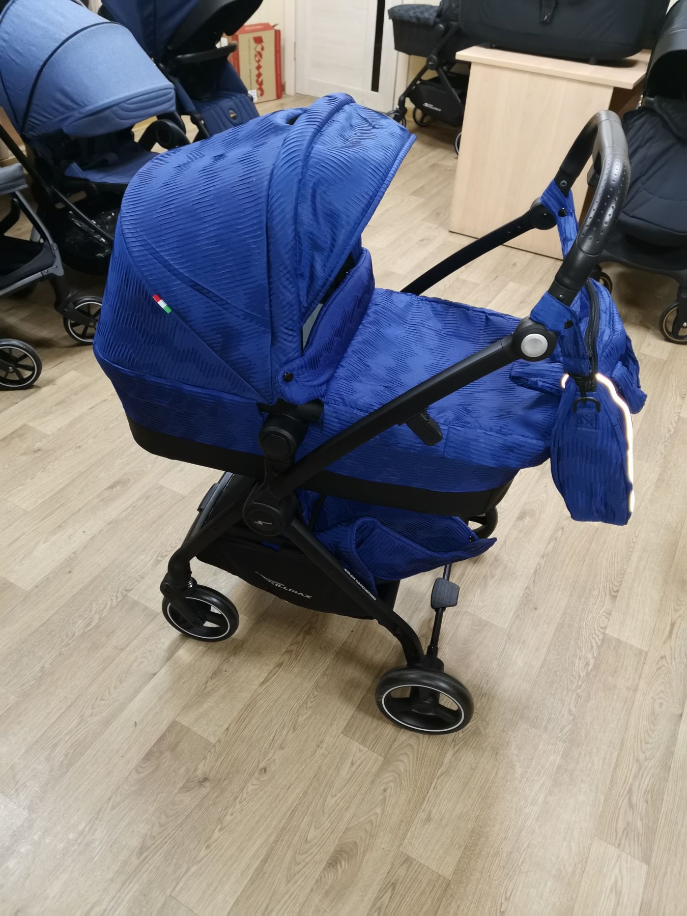 В комплекте: коляска прогулочная, съемная детская люлька, корзина для багажа, утепленный чехол для ног, сумка для детских принадлежностей, мягкая подкладка для сиденья, матрасик для люльки.