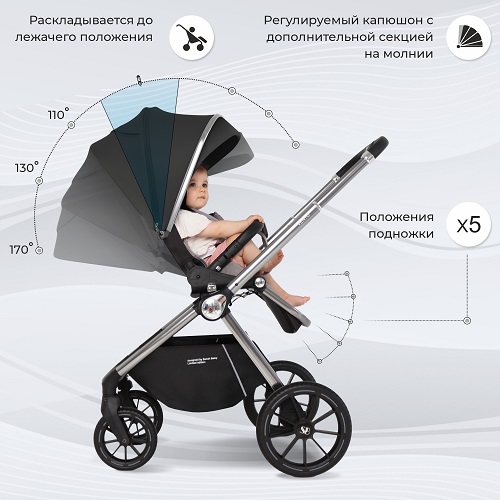 - Накидка на ножки и большой капюшон защитят вашего малыша от непогоды