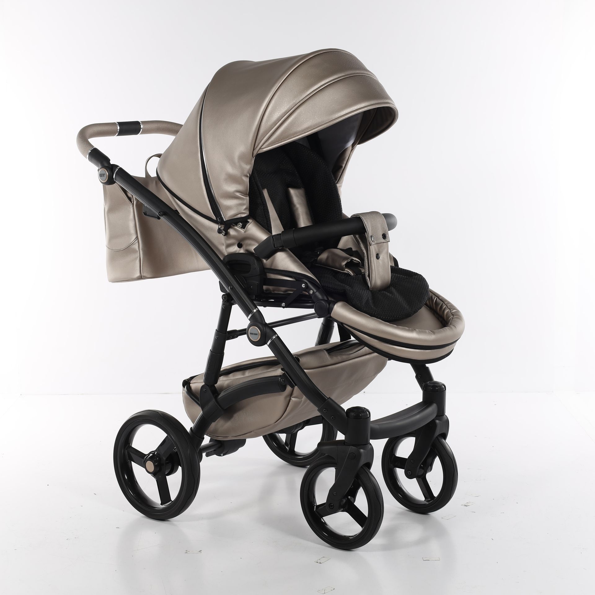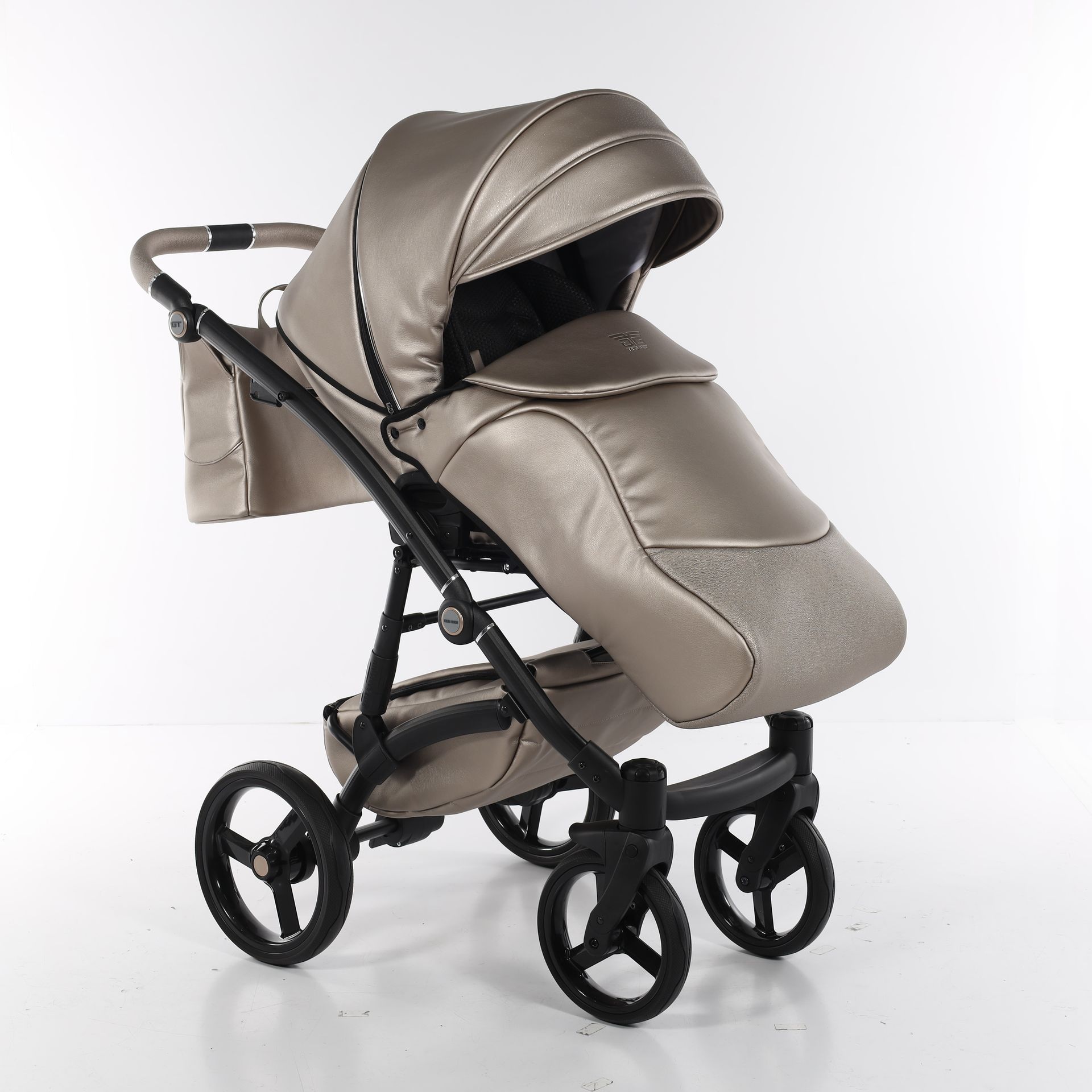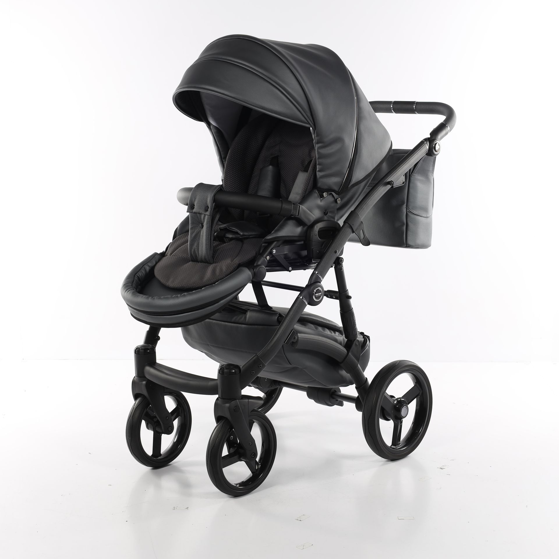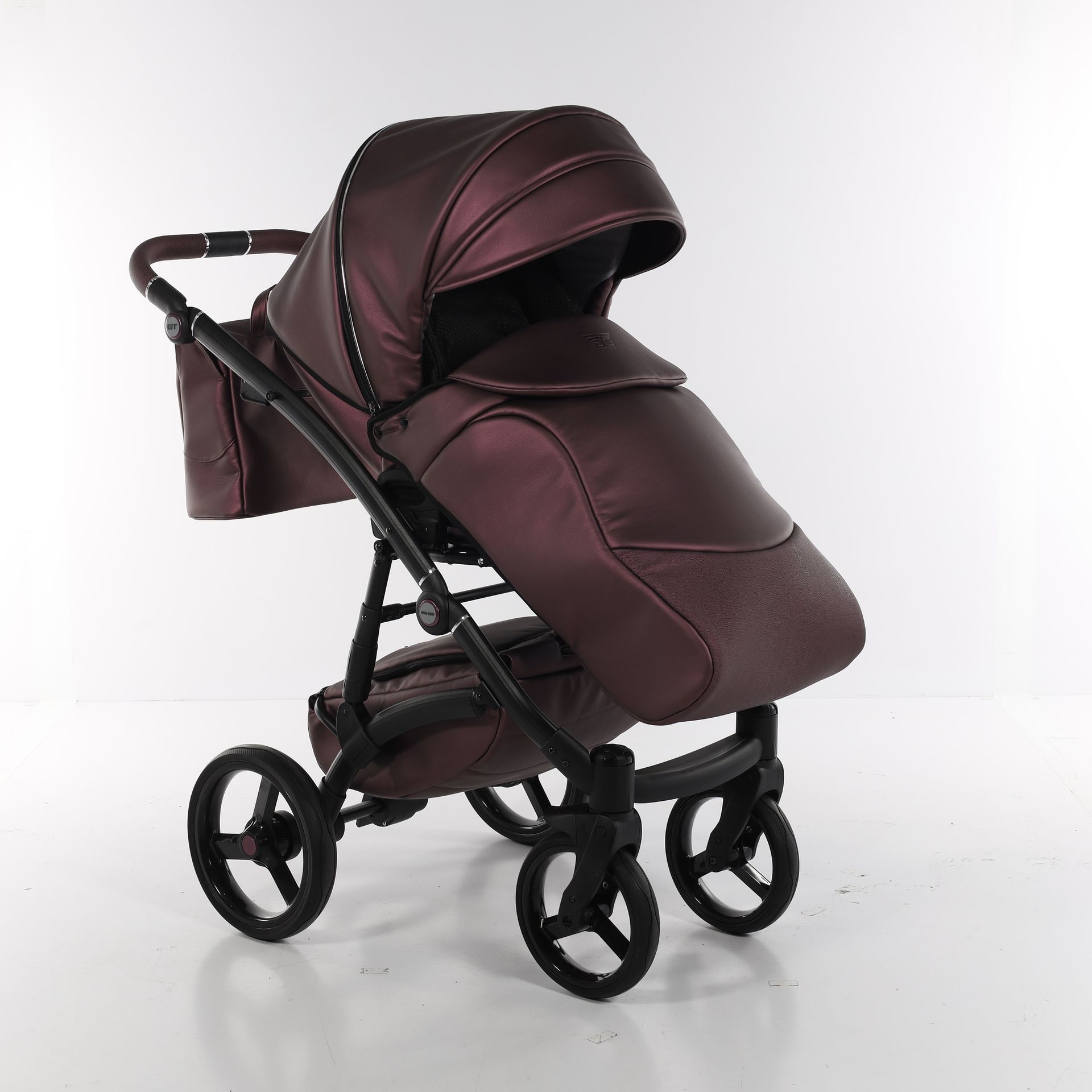 - Коляска выполнена из высококачественной экокожи и перфорированной кожи, которая стимулирует микровоздушную циркуляцию — все материалы водонепроницаемы и соответствуют стандарту защиты от солнца. У них есть фильтр UV 50+, разрешение Eko-Tex Standard100 и европейский стандарт безопасности EN1888: 2012.