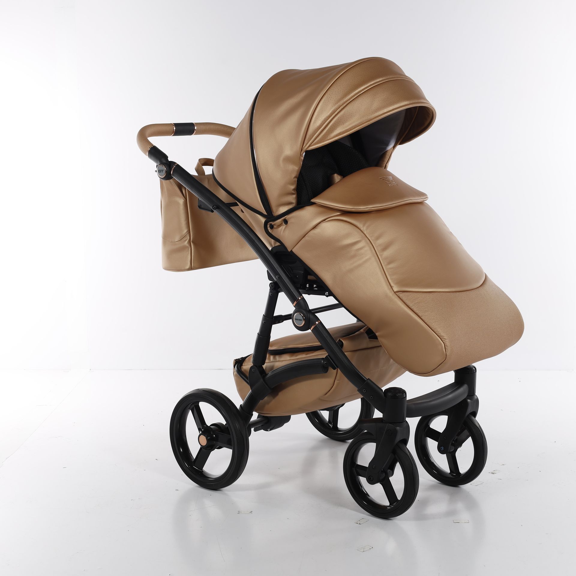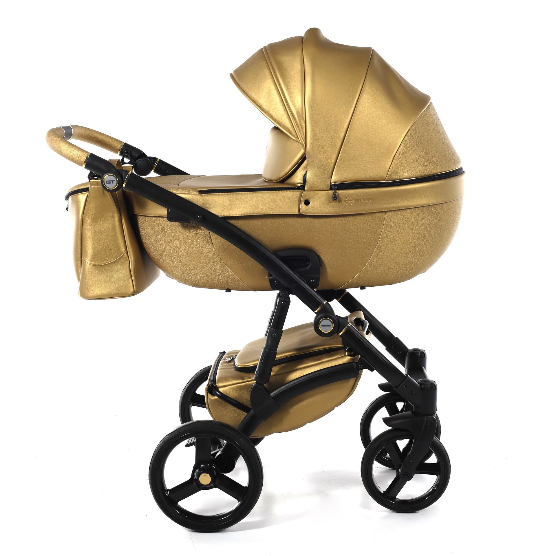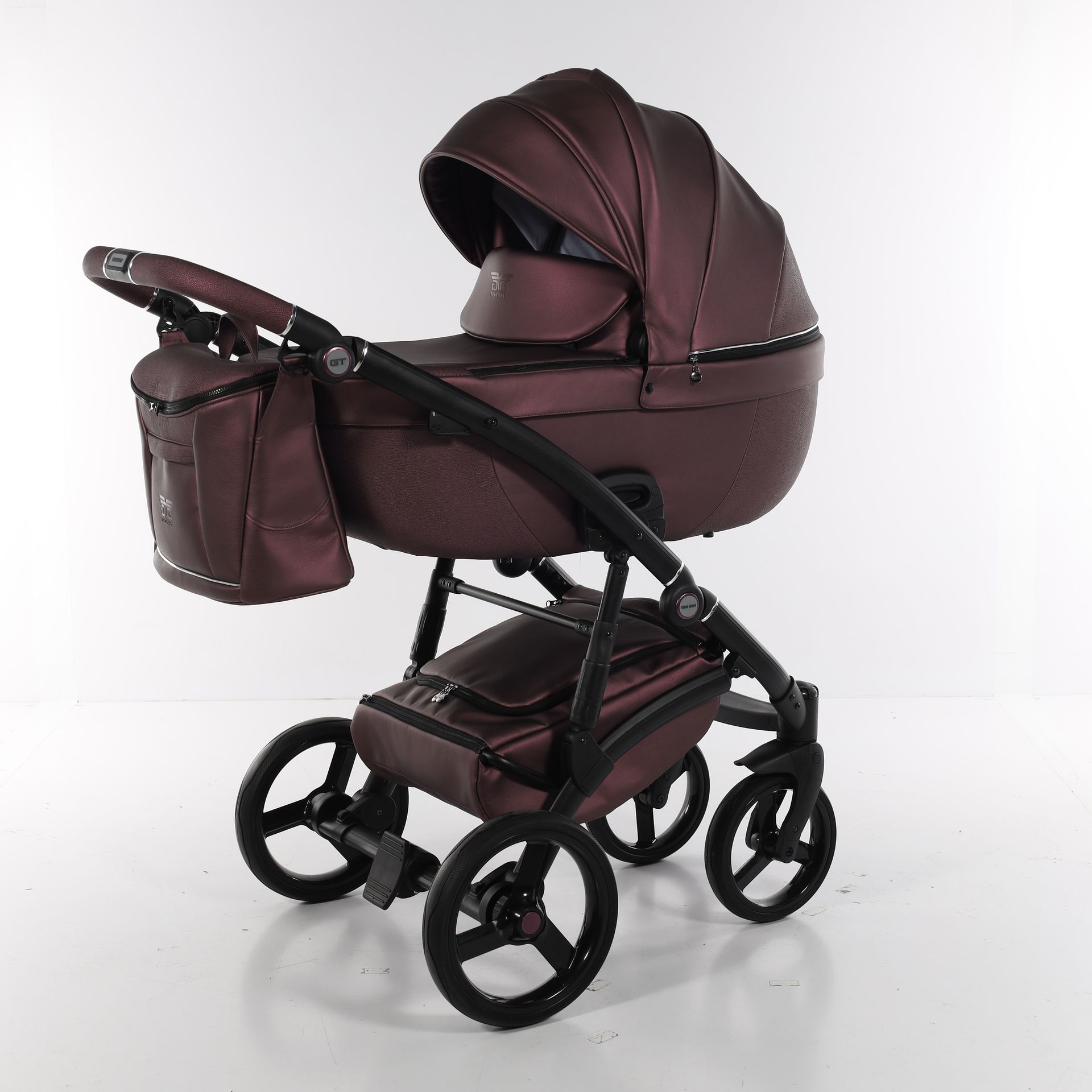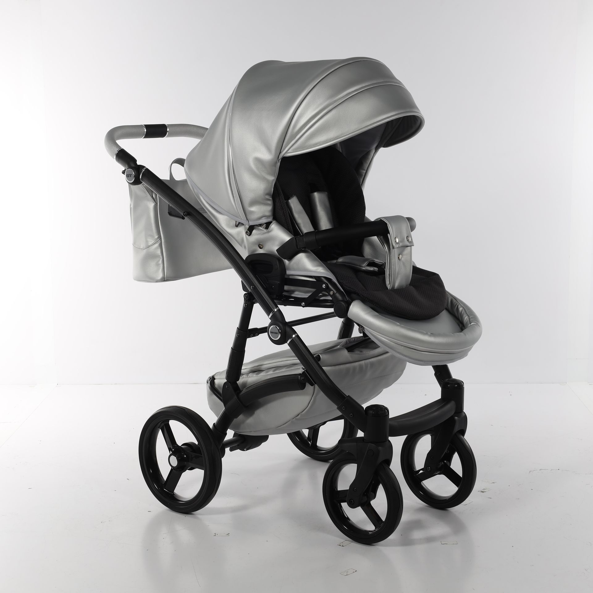 - Коляска выполнена из высококачественной экокожи и перфорированной кожи, которая стимулирует микровоздушную циркуляцию — все материалы водонепроницаемы и соответствуют стандарту защиты от солнца. У них есть фильтр UV 50+, разрешение Eko-Tex Standard100 и европейский стандарт безопасности EN1888: 2012.
