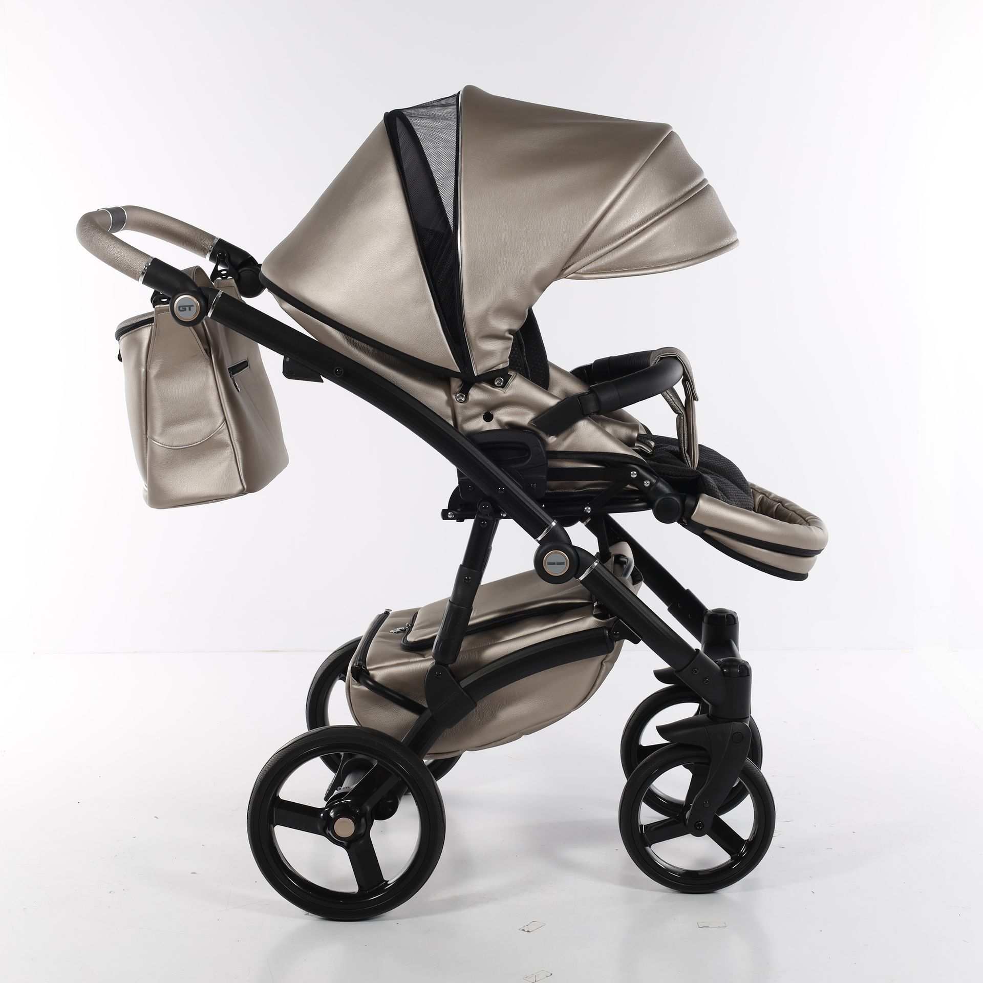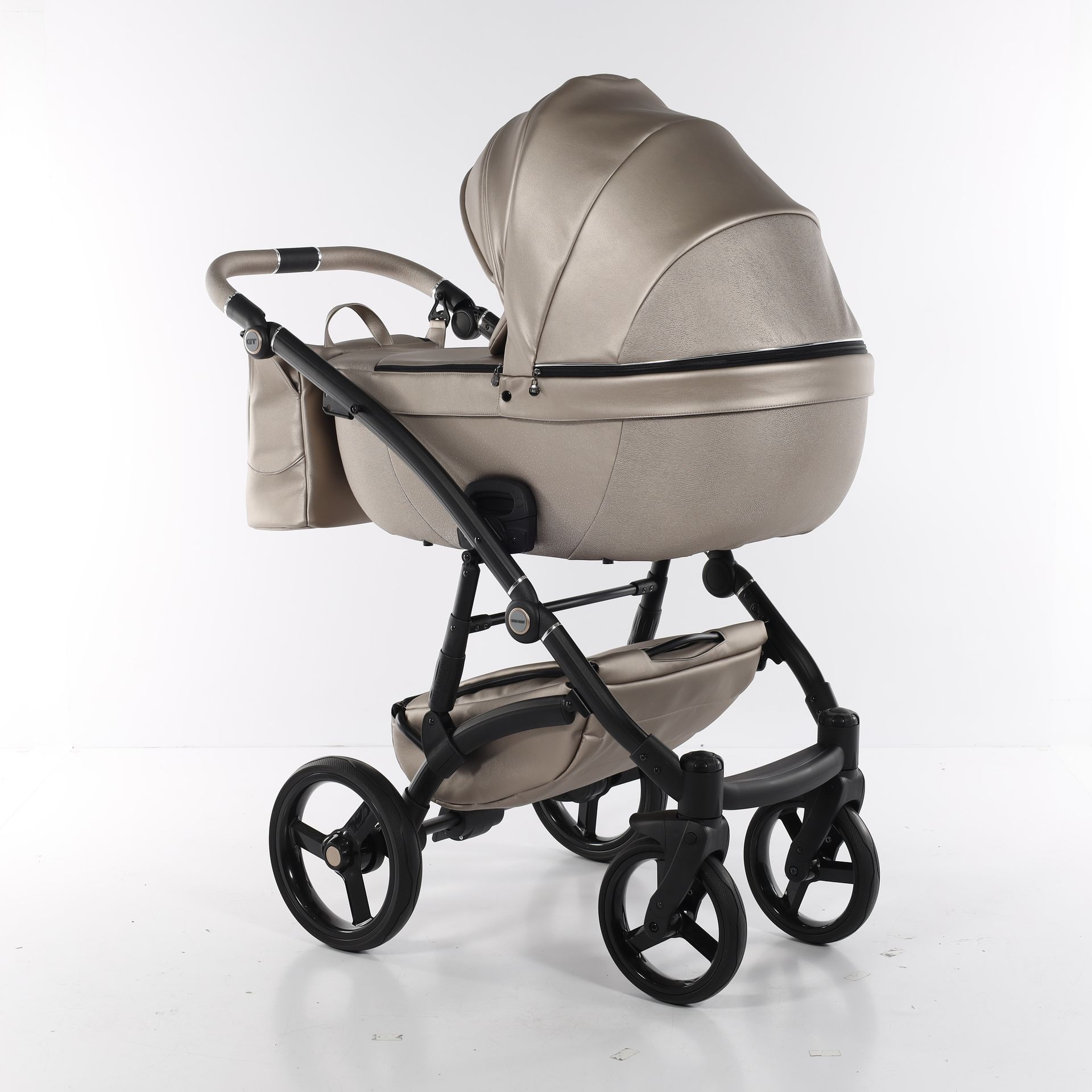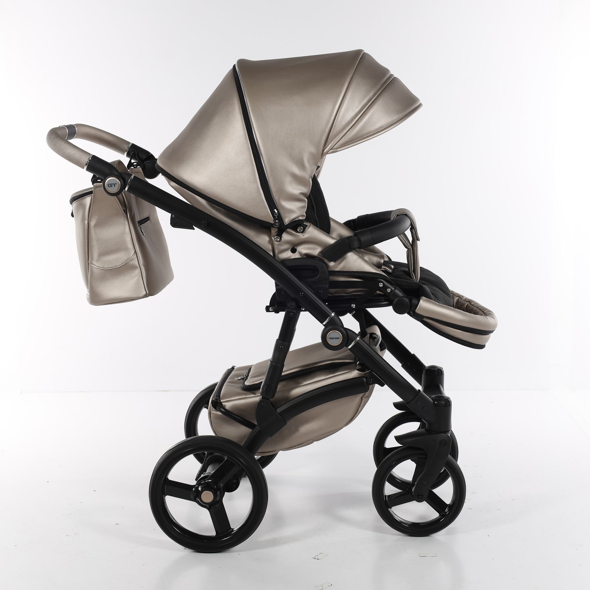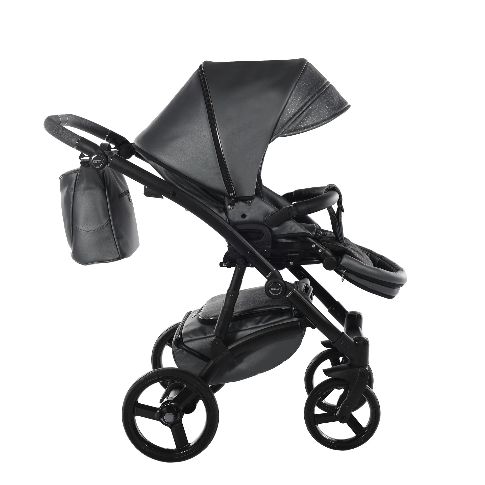 - Коляска выполнена из высококачественной экокожи и перфорированной кожи, которая стимулирует микровоздушную циркуляцию — все материалы водонепроницаемы и соответствуют стандарту защиты от солнца. У них есть фильтр UV 50+, разрешение Eko-Tex Standard100 и европейский стандарт безопасности EN1888: 2012.