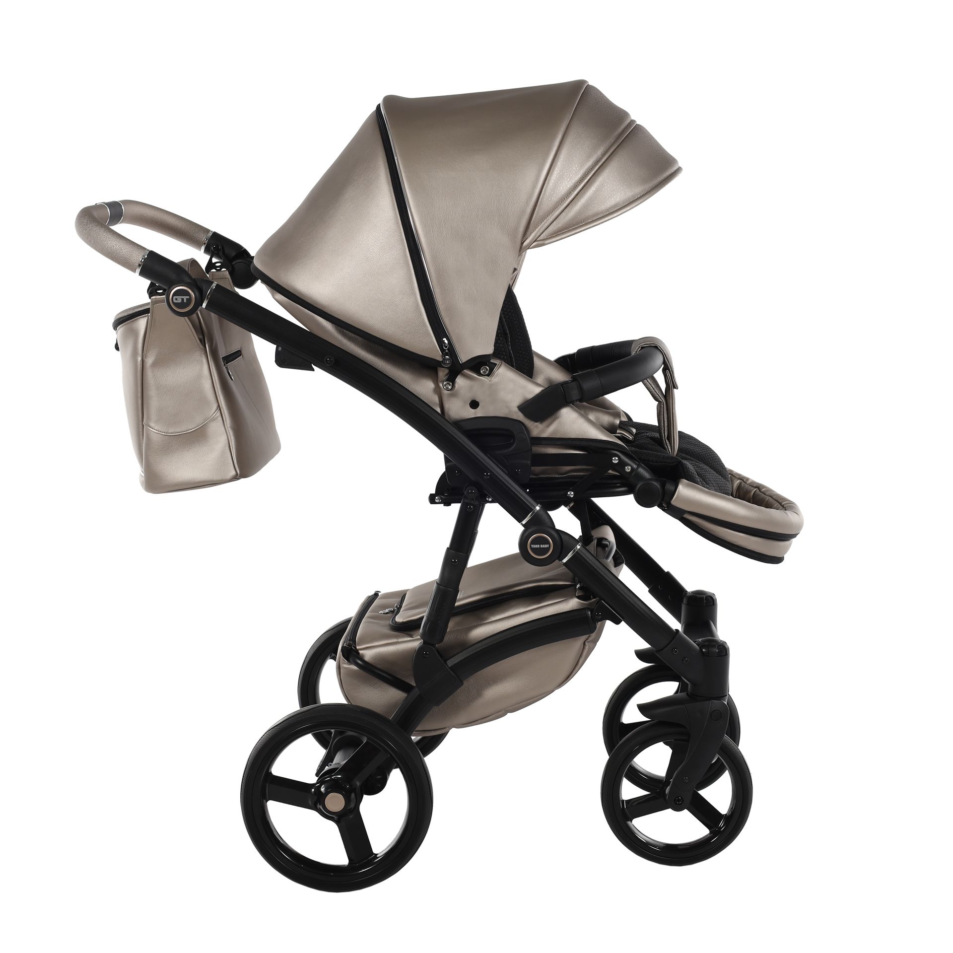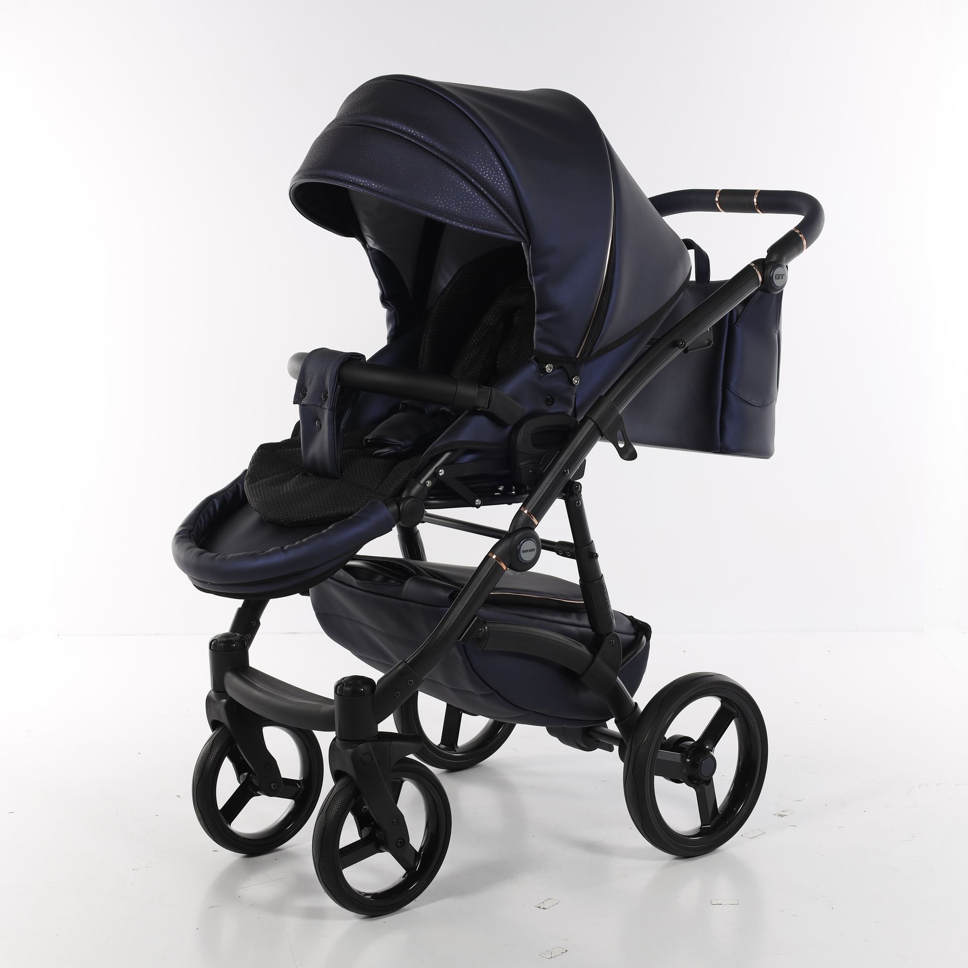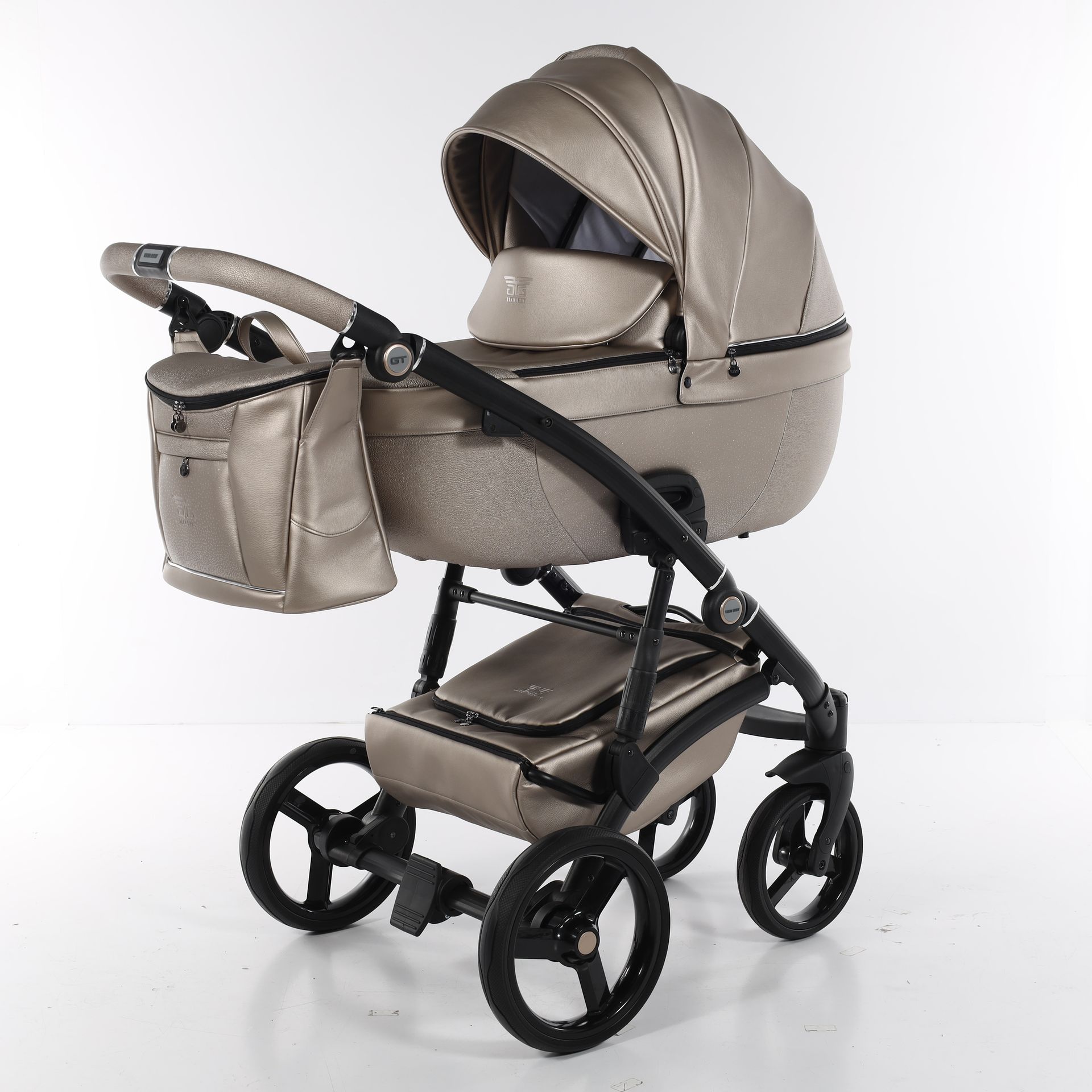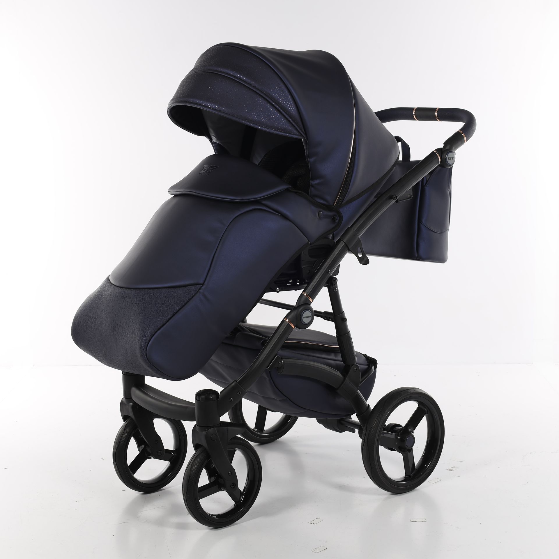 - Коляска выполнена из высококачественной экокожи и перфорированной кожи, которая стимулирует микровоздушную циркуляцию — все материалы водонепроницаемы и соответствуют стандарту защиты от солнца. У них есть фильтр UV 50+, разрешение Eko-Tex Standard100 и европейский стандарт безопасности EN1888: 2012.
