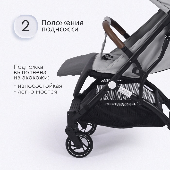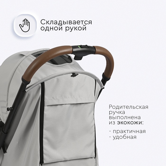 - Ручка из эко кожи расположена на удобной для родителей высоте.