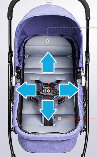 Широкая и длинная сидушки коляски (32 см - 80 см) обеспечит свободу ребенку в зимней одежде, а также детишкам очень крупной комплекции.