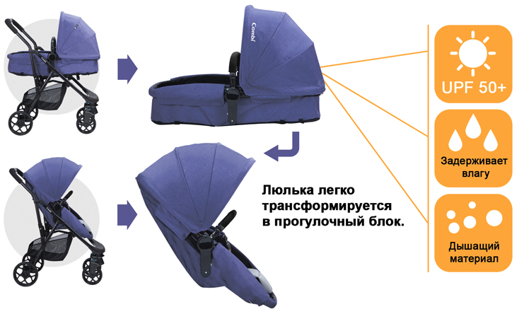 Коляска трансформер Combi I-thruller 4W 2 в 1 (комби ай труллер 4в) - новинка 2019 года. Это первая в мире коляска, которая складывается вместе с люлькой или с прогулочным блоком одной рукой за одно движение, а люлька за несколько секунду может быть трансформирована в прогулочный блок. При этом модель весит всего 9,4 кг с люлькой. Даже если у вас нет лифта, родители смогут самостоятельно, одной рукой сложить коляску и подняться с моделью на нужный этаж.
