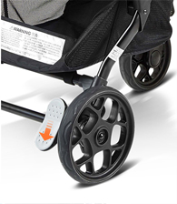 Удобный ножной тормоз на больших колесах, позволяет надежно зафиксировать коляску.