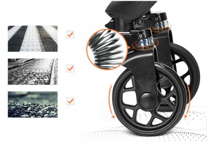 В сложенном состоянии коляска самостоятельно стоит на колесах, не занимая много места и легко может быть помещена в багажник автомобиля. У коляски большие колеса с инновационной системой амортизации инновационной на силиконовых вставках. Ход коляски будет плавным и спокойным.